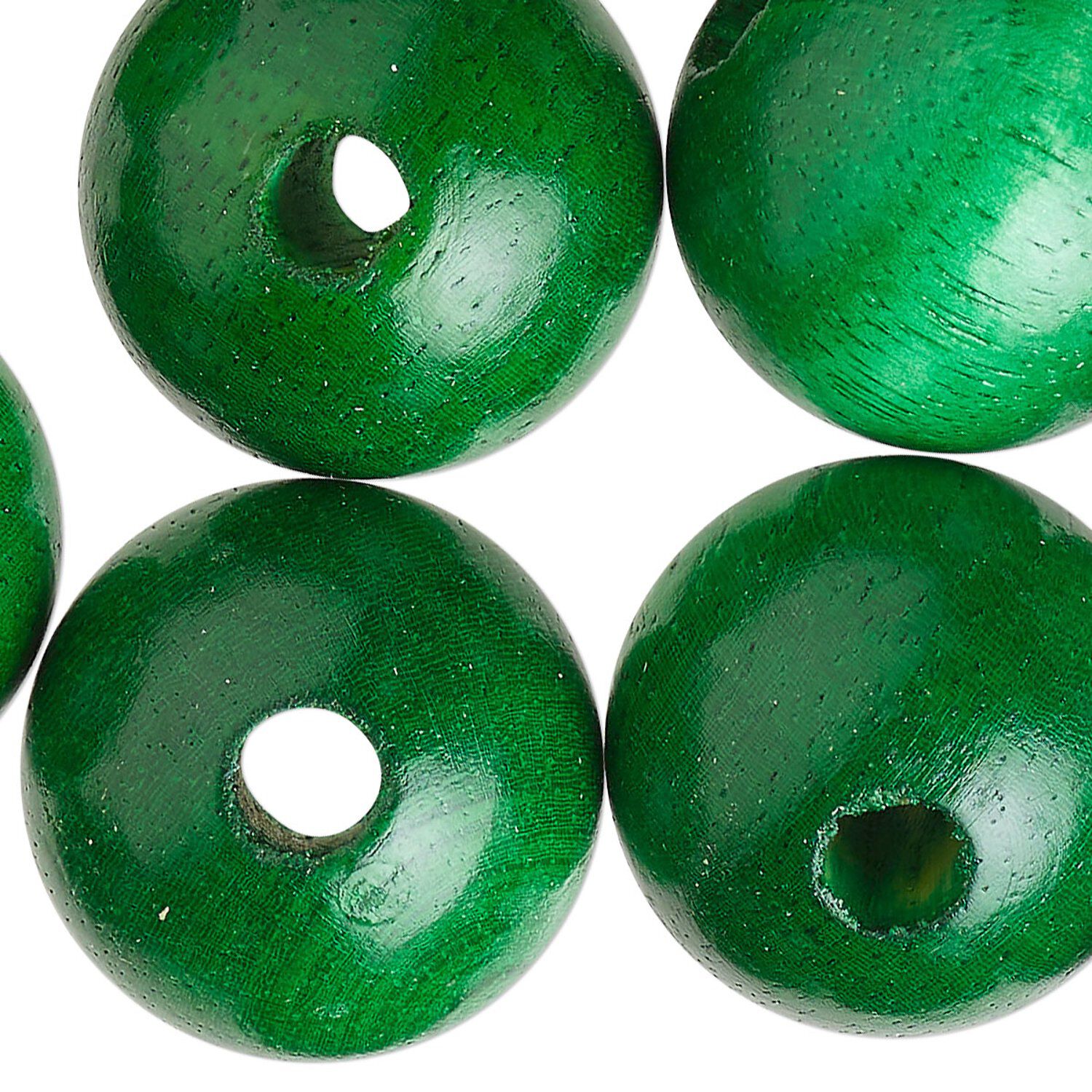 Bead, wood (dyed), green, 23-25mm round. Sold per pkg of 30.