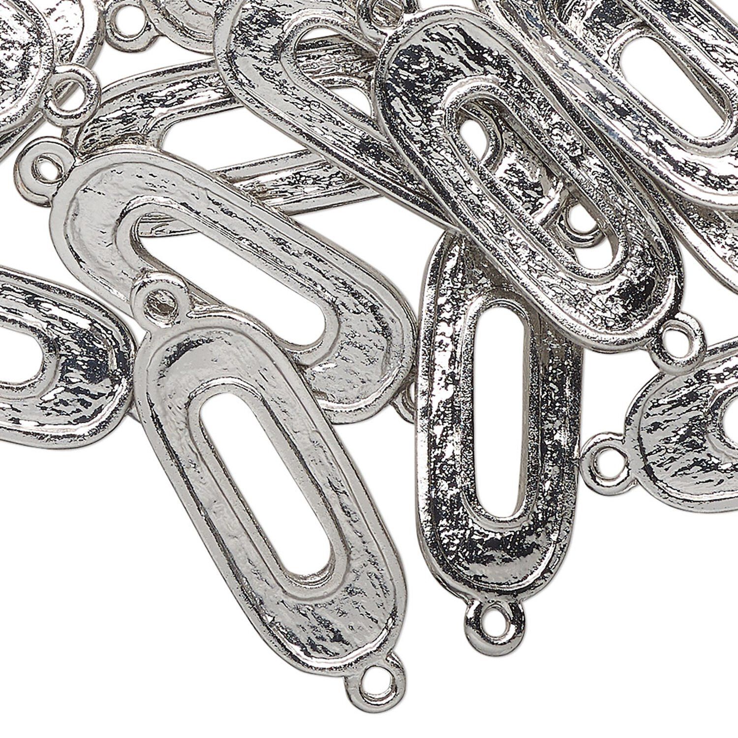 Link, silver-finished "pewter" (zinc-based alloy), 24x10mm slightly curved textured open oval. Sold per pkg of 25.