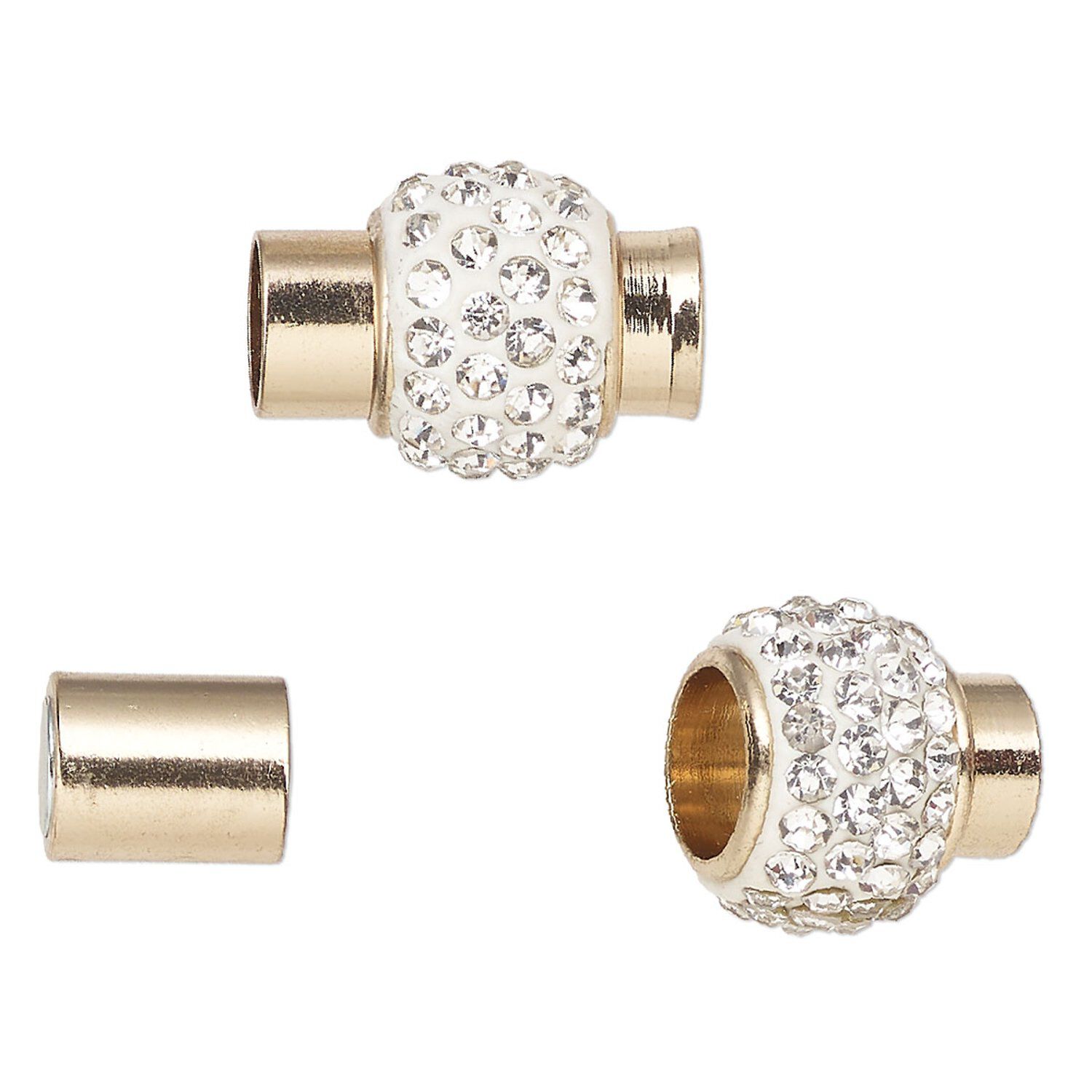 Clasp, magnetic, gold-finished brass / glass / epoxy, clear and white, 14x11mm barrel with glue-in ends, 7mm inside diameter. Sold per pkg of 2.