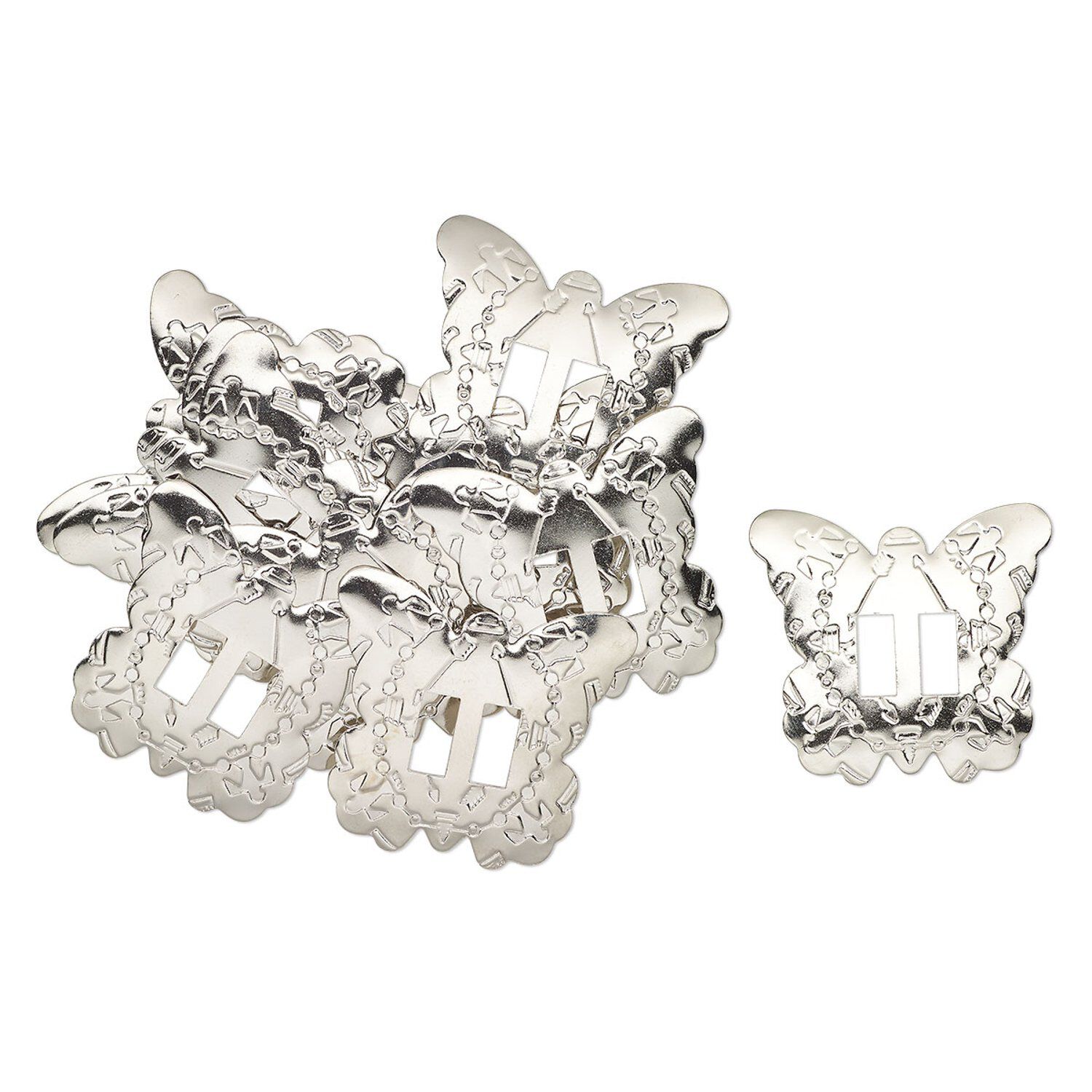 Slide, steel, 35x34mm-38x35mm textured butterfly, (2) 10x4.5mm rectangle holes. Sold per pkg of 10.