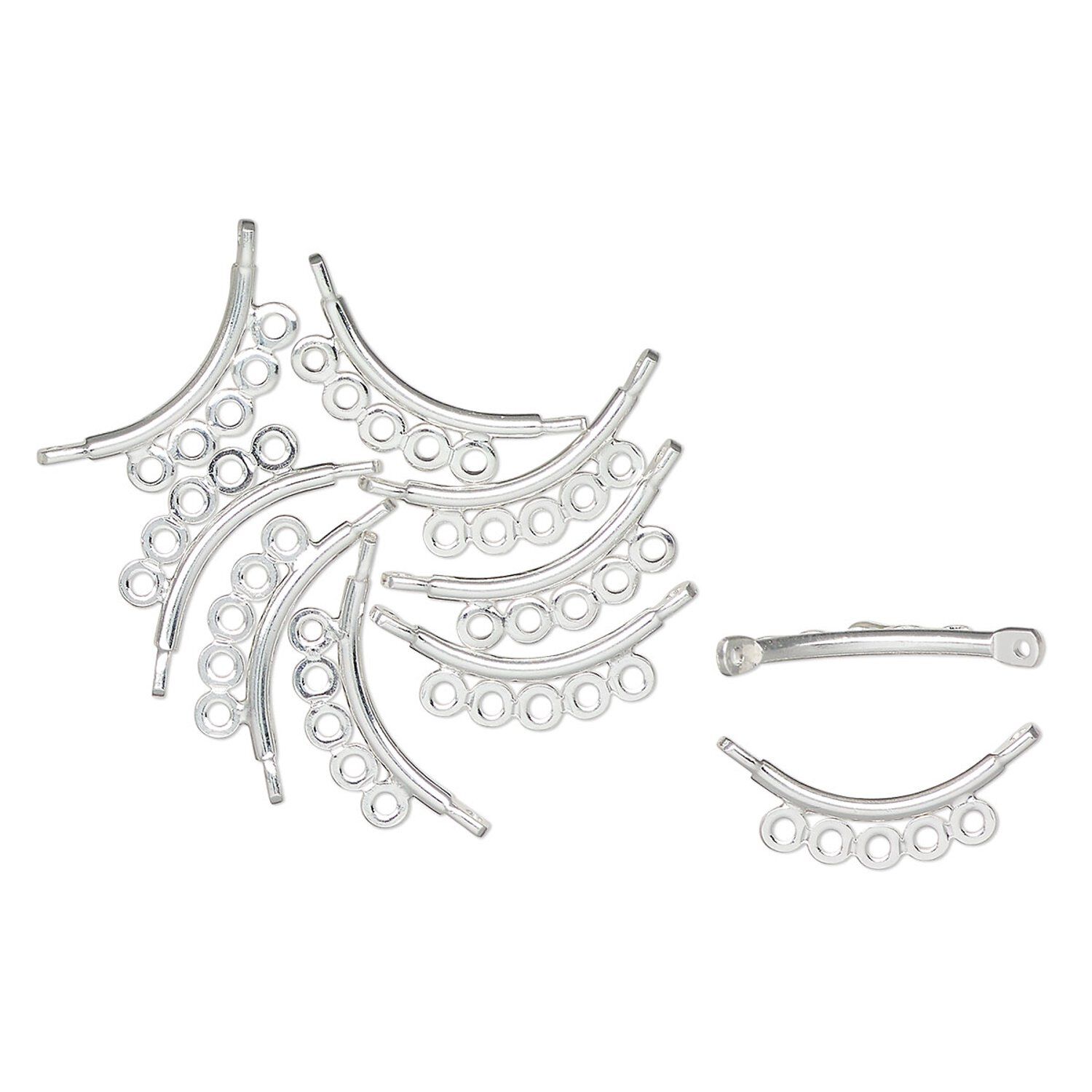 Connector, silver-plated brass, 16x3mm curved flat end bar. Sold per pkg of 10.