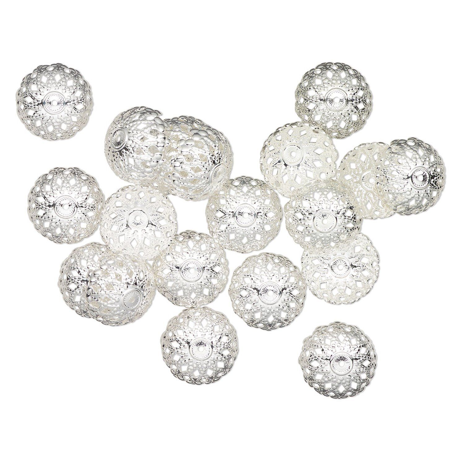 Bead cap, silver-finished "pewter" (zinc-based alloy), 17mm fancy dome with cutouts, fits 16-18mm beads. Sold per pkg of 20.