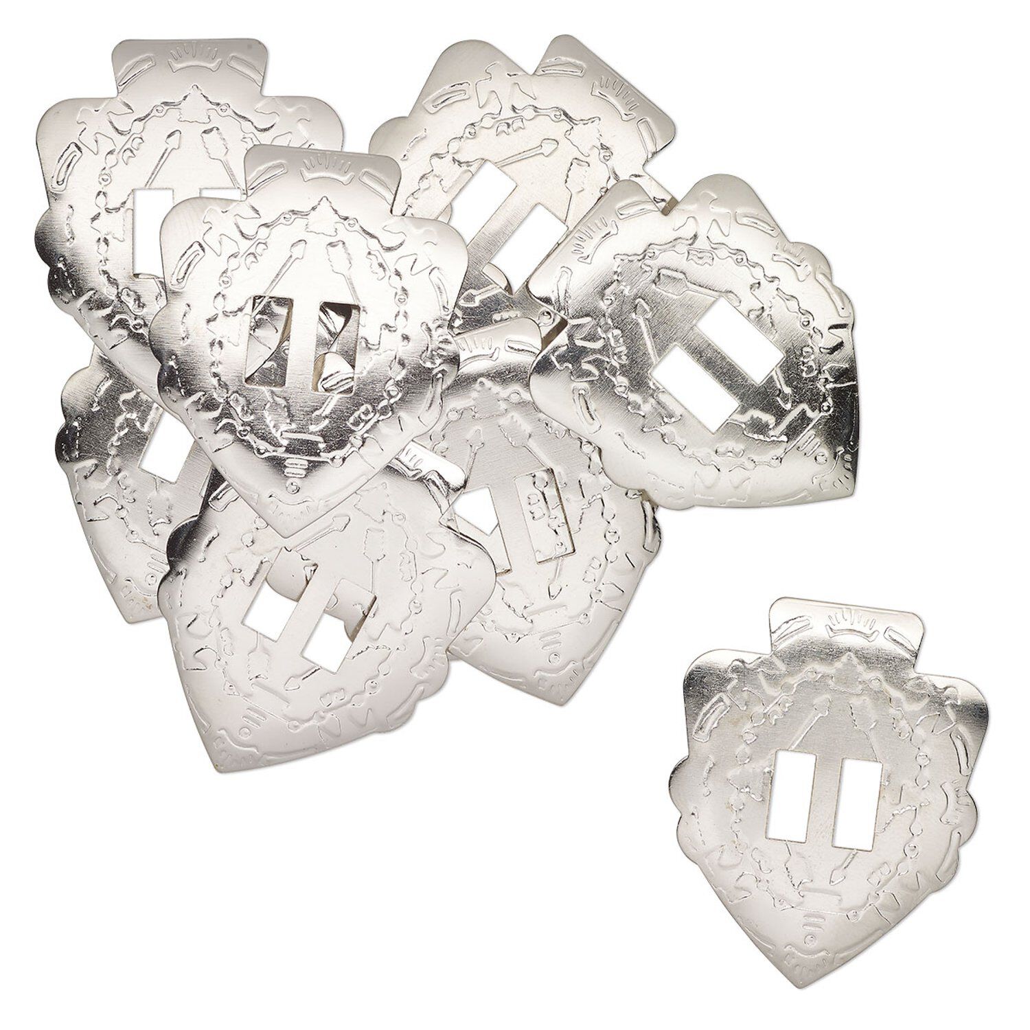 Slide, silver-finished steel, 44x35mm textured arrowhead, (2) 10x4mm rectangle holes. Sold per pkg of 10.