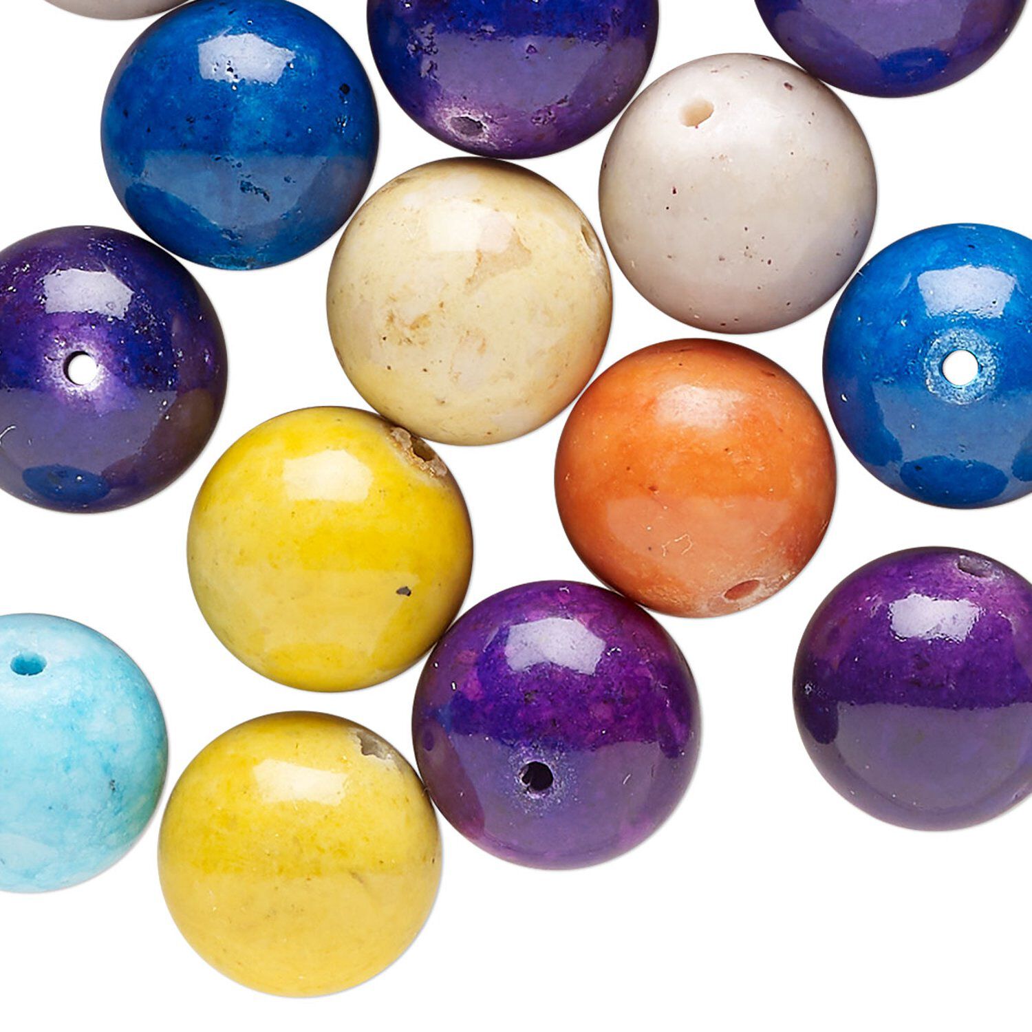Fossil stone 1pkg1, round bead 4 oz 12mm