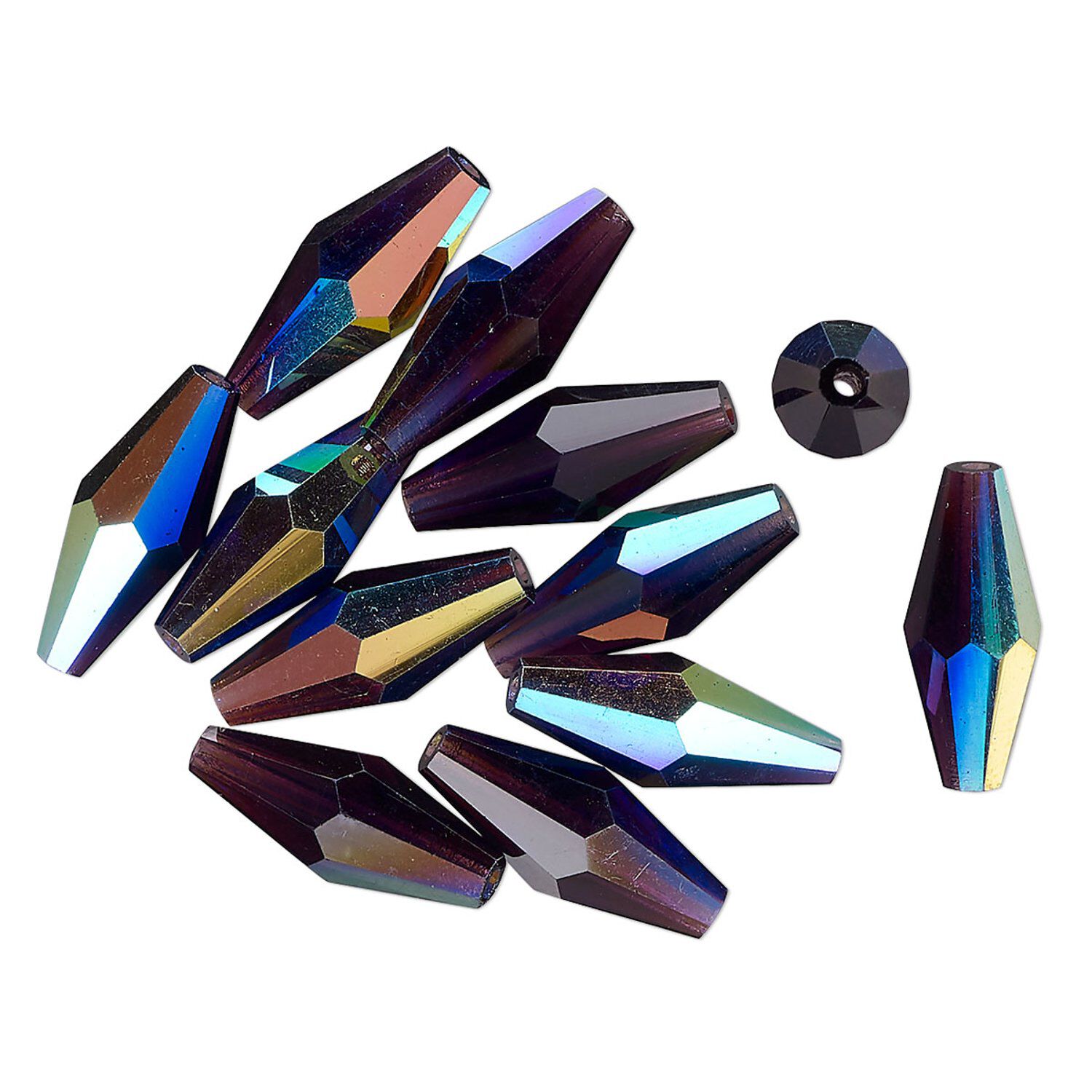 Bead 12pk amethyst AB, vintage Preciosa Czech crystal 15x6mm faceted double cone