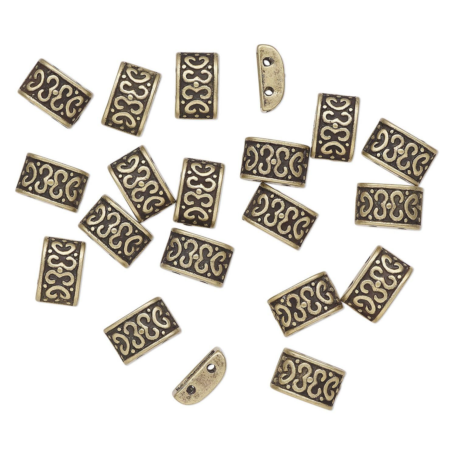Spacer bar, 2-strand, antique brass-finished "pewter" (zinc-based alloy), 9x5mm rounded domed fancy rectangle, fits up to 5mm beads. Sold per pkg of 20.