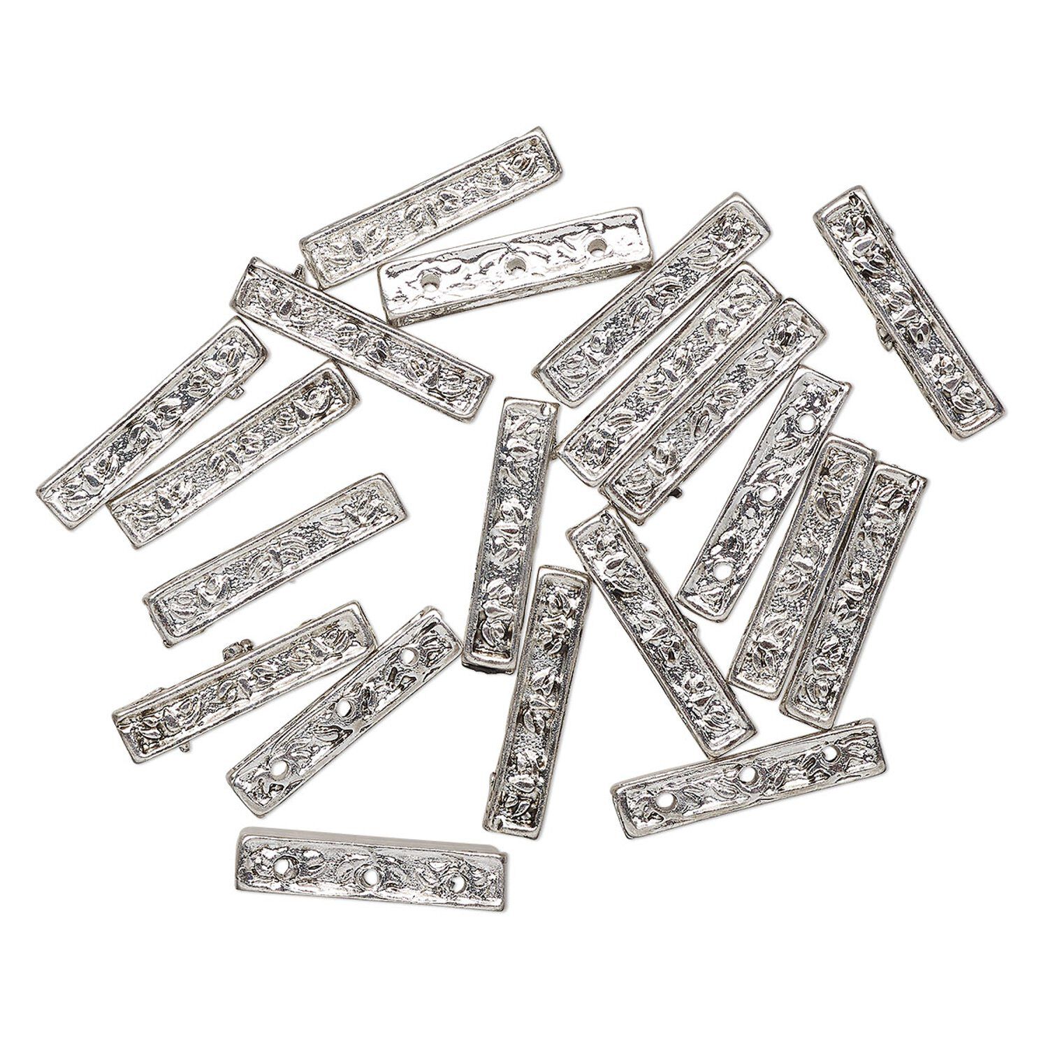 Spacer bar, 3-strand, silver-finished "pewter" (zinc-based alloy), 24x6mm double-sided textured rectangle, fits up to 6.5mm beads. Sold per pkg of 20.