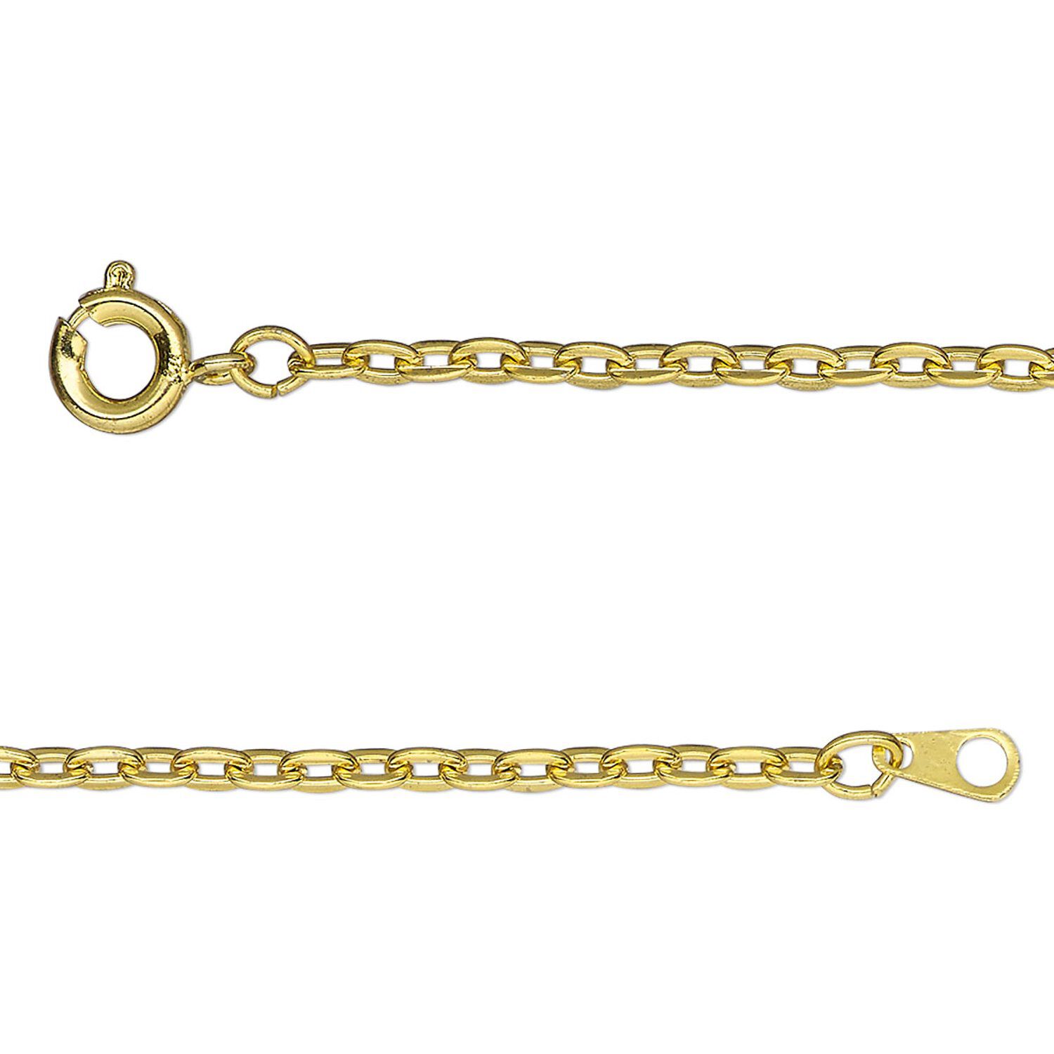 Chain, gold-finished steel, 2mm flat cable, 17 inches with springring clasp. Sold individually.