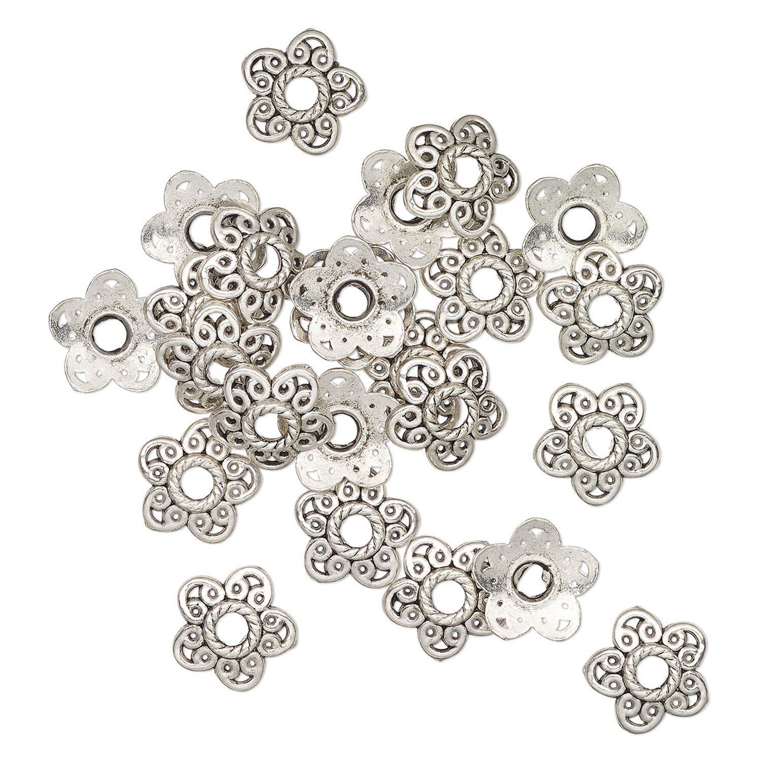 Bead cap, antique silver-finished "pewter" (zinc-based alloy), 12mm flower, fits 11-13mm beads. Sold per pkg of 24.