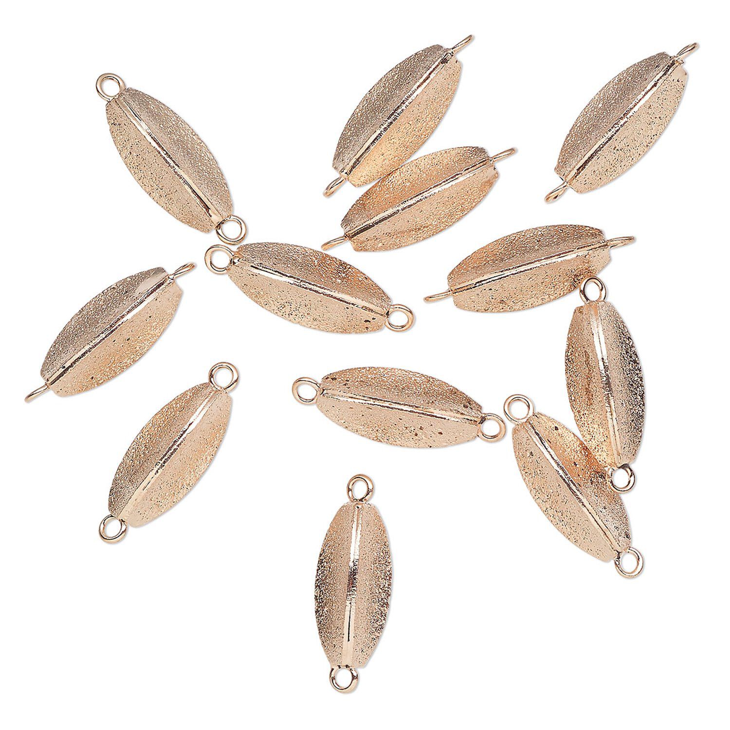 Link, rose gold-plated brass, 16x7mm 3-sided stardust curved oval. Sold per pkg of 12.