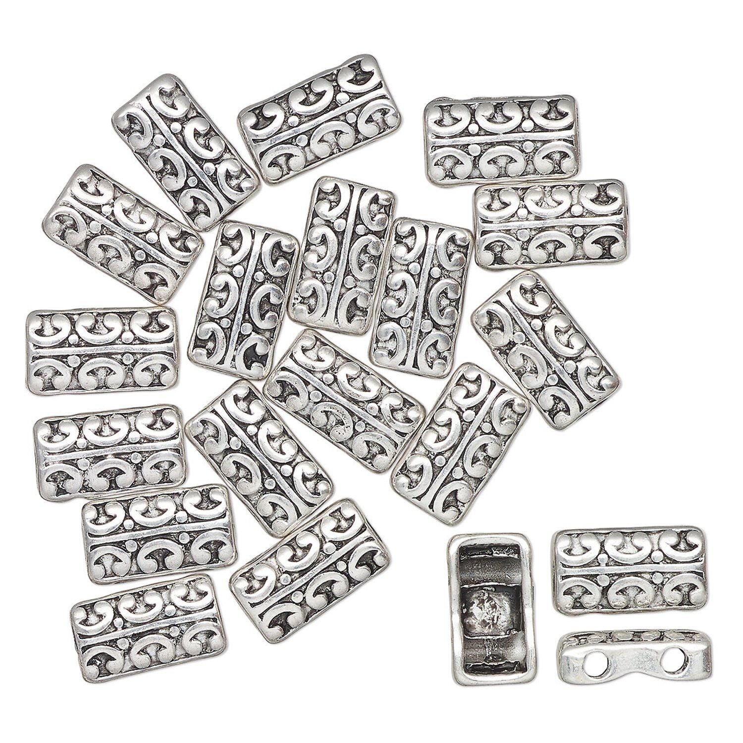 Spacer bar, antique silver-finished "pewter" (zinc-based alloy), 14x8mm 2-strand rectangle with horseshoe, fits up to 9mm round beads. Sold per pkg of 20.