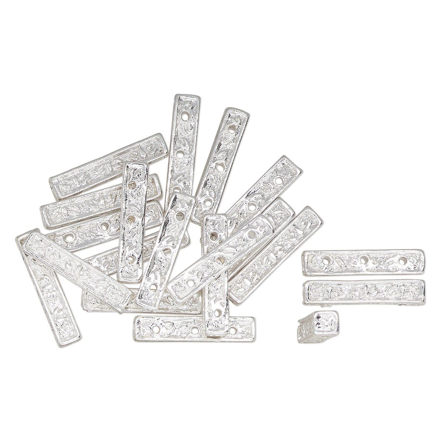 Spacer bar, silver-finished "pewter" (zinc-based alloy), 24x5mm 3-strand fancy rectangle, fits up to 8.5mm round beads. Sold per pkg of 20.