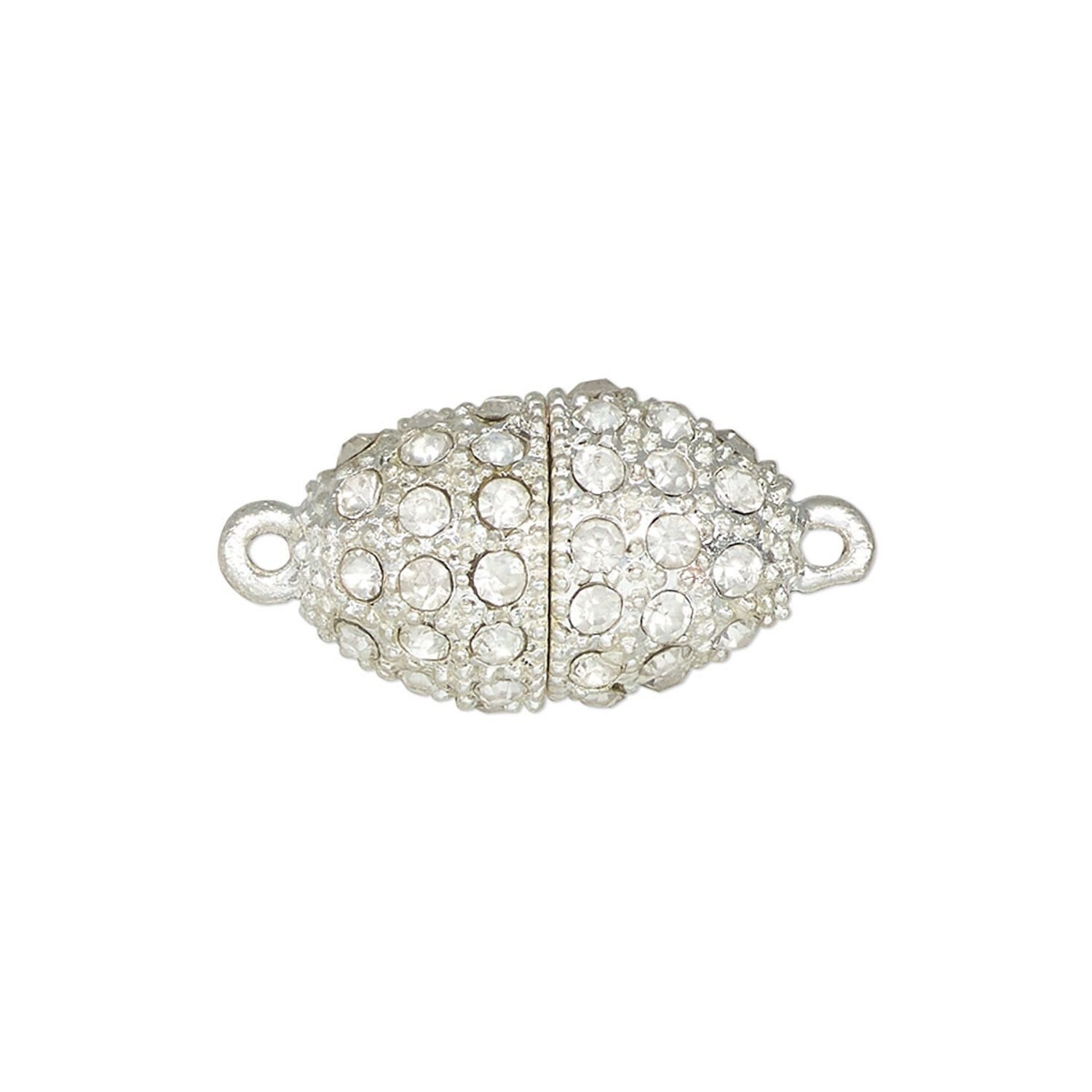 Clasp, magnetic, silver-finished brass and glass, clear, 21x13mm-21x14mm oval. Sold individually.