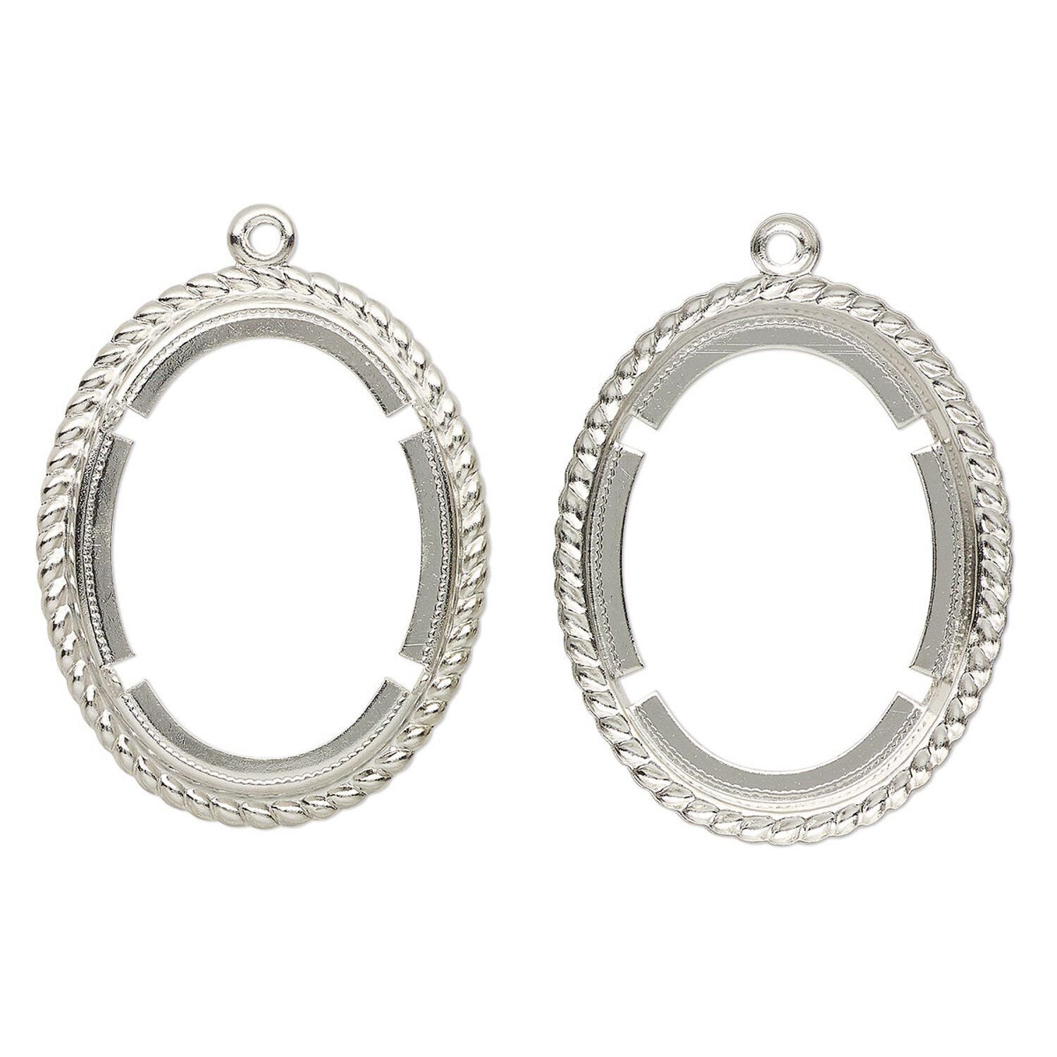Focal, antique silver-finished "pewter" (zinc-based alloy), 36x29mm with rope edges and 30x20mm oval cabochon setting. Sold per pkg of 2.