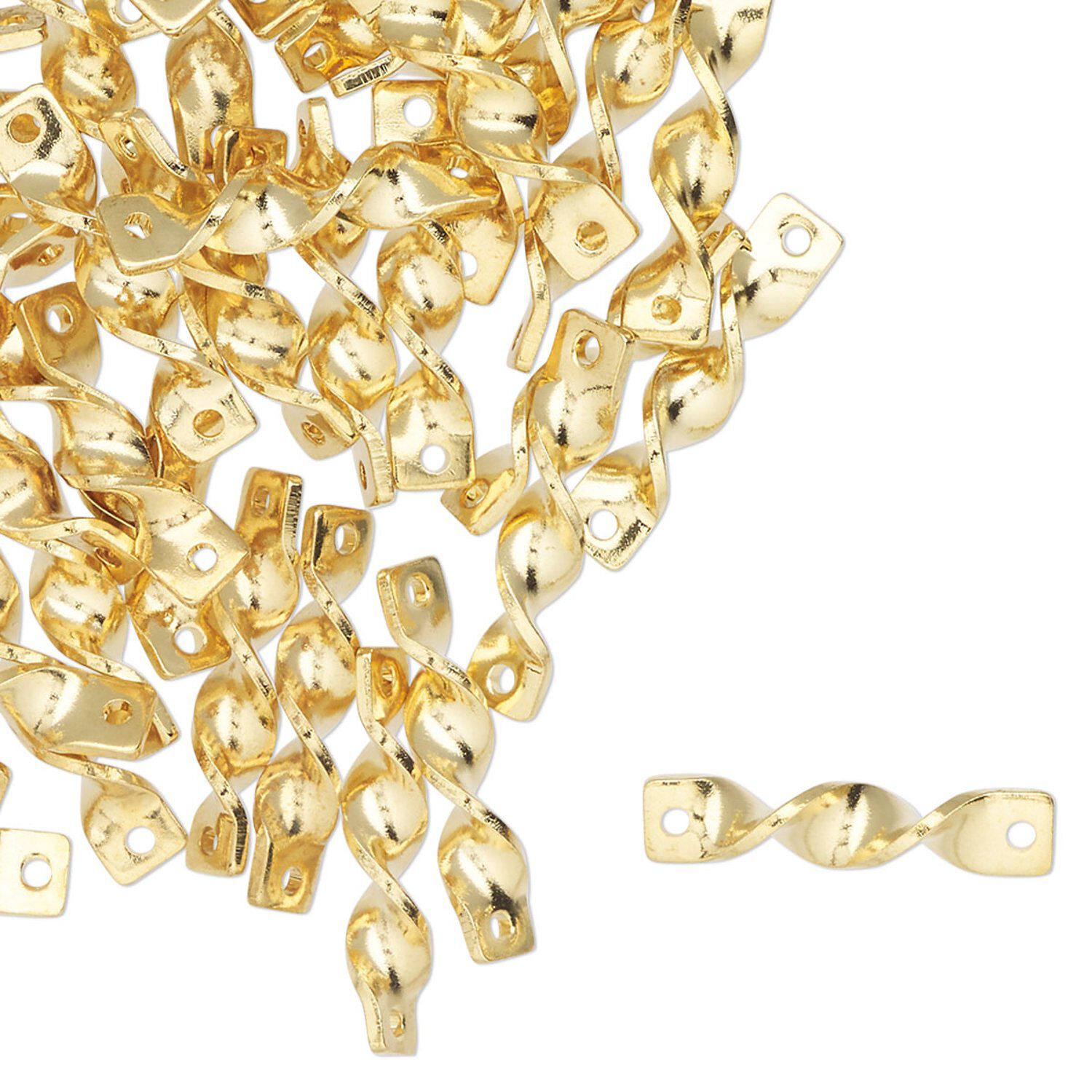 Link, gold-finished "pewter" (zinc-based alloy), 12x4mm twisted rectangle. Sold per pkg of 50.