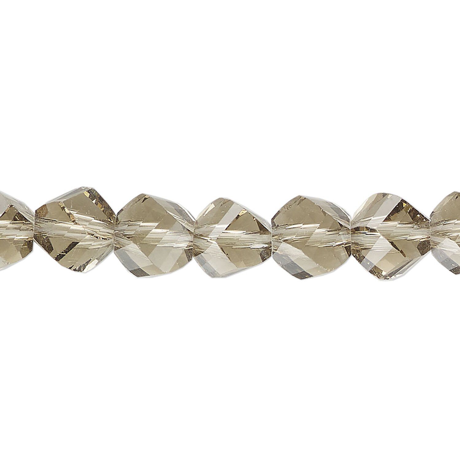 Bead, glass, translucent black diamond, 6-8mm faceted helix. Sold per 7-inch strand, approximately 20 beads.