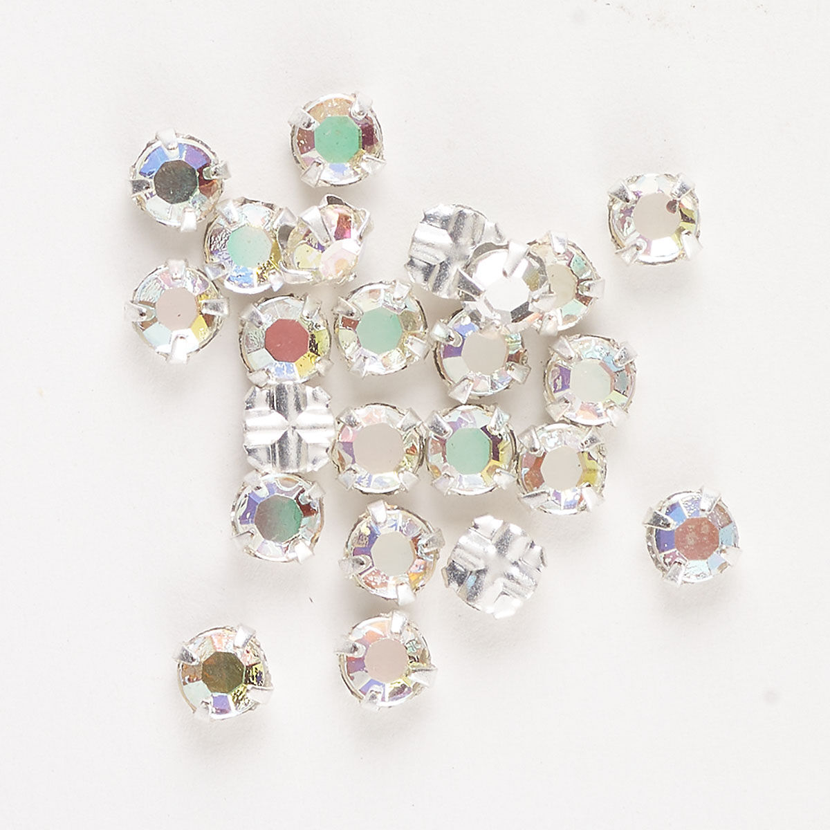 Bead 24pk rose montees crystal AB silver finish, vintage Preciosa Czech crystal 4.6-4.8mm round SS20