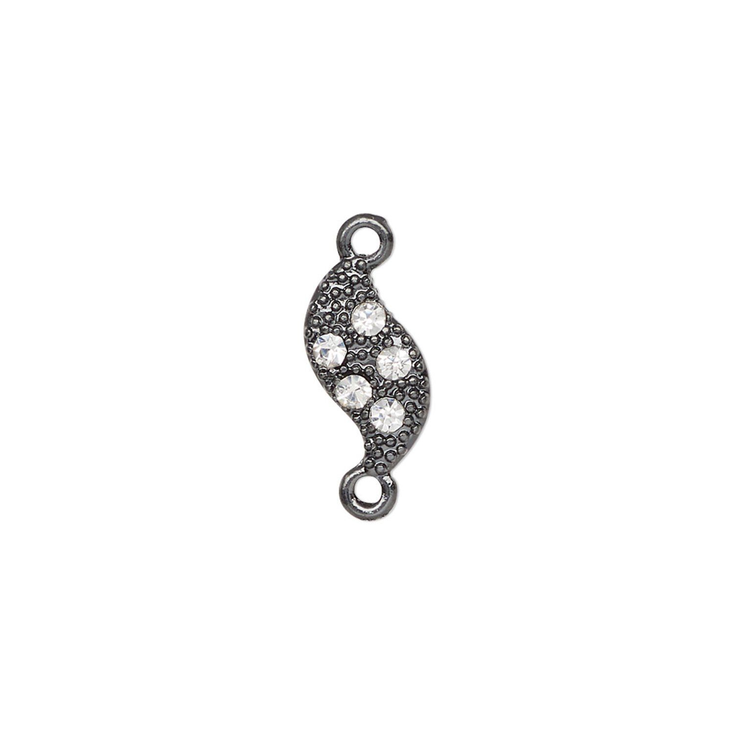 Link, gunmetal-finished "pewter" (zinc-based alloy) and glass, clear, 13x7mm double-sided wave. Sold individually.