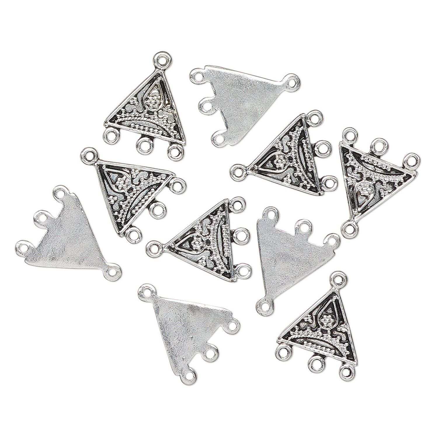 Drop, antique silver-finished "pewter" (zinc-based alloy), 18x15mm fancy triangle with 3 loops. Sold per pkg of 10.