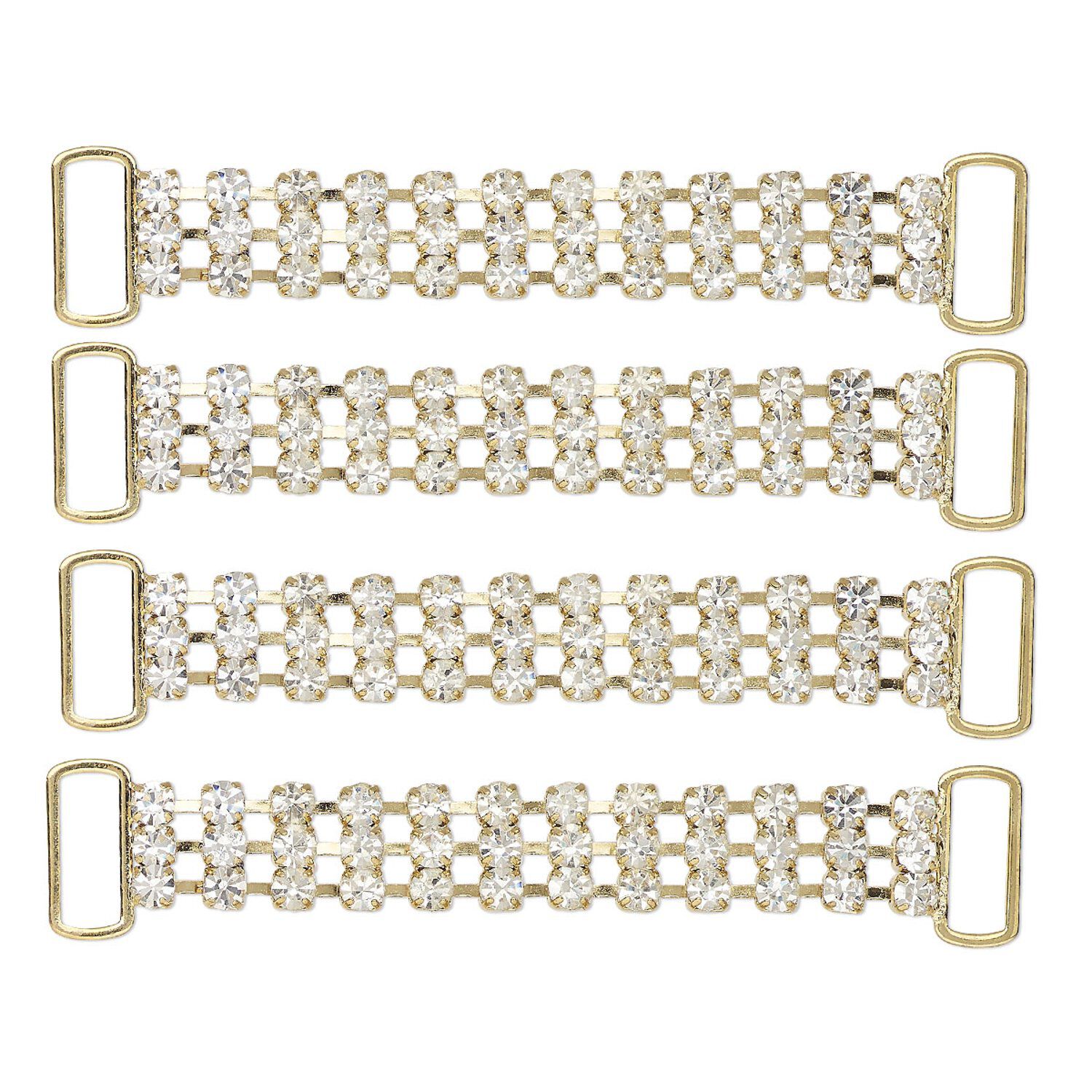 Focal, gold-finished brass and glass, clear, 3x1/2 inch rectangle with (2) 14x5mm holes. Sold per pkg of 4.