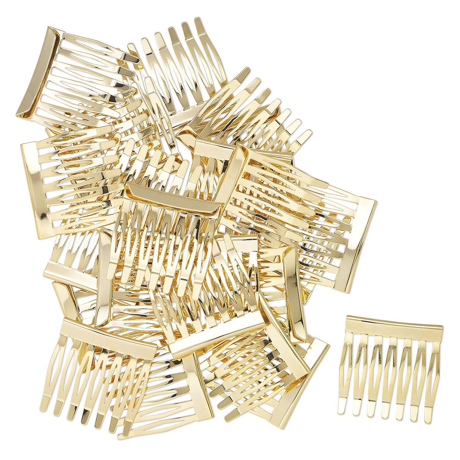 Hair comb, gold-finished brass, 1 inch with hooked lip. Sold per pkg of 24.