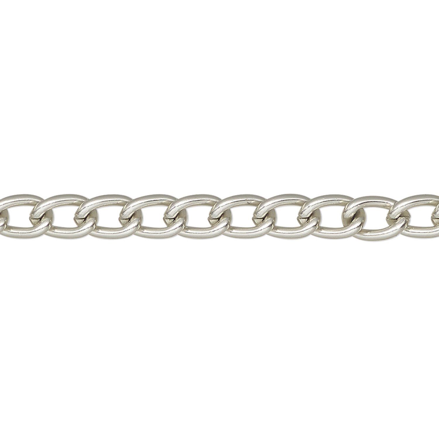 Chain, silver-finished aluminum, 4.5mm curb. Sold per pkg of 36 inches.