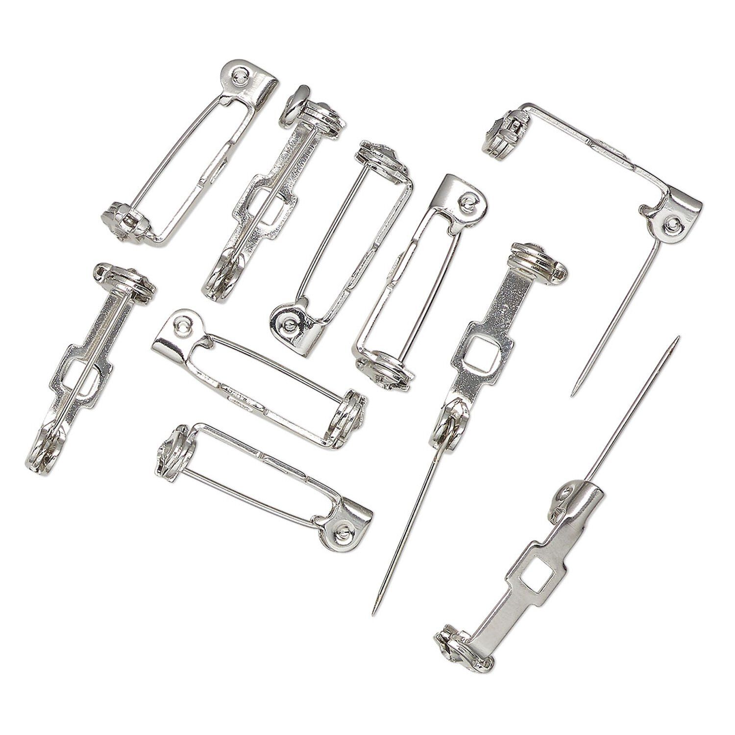 Make pins or brooches from almost anything! Bond or sew these pin backs onto any flat surface: plastic, beadwork, cabochons, feathers and other crafters' materials. Hole can be used to stitch embellishment, add jump rings for dangles or increase gripping surface for adhesives.