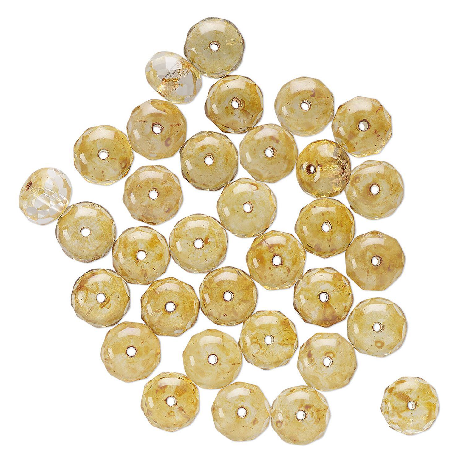 Bead, Czech glass, transparent light amber, 9x6mm faceted rondelle. Sold per pkg of 33.