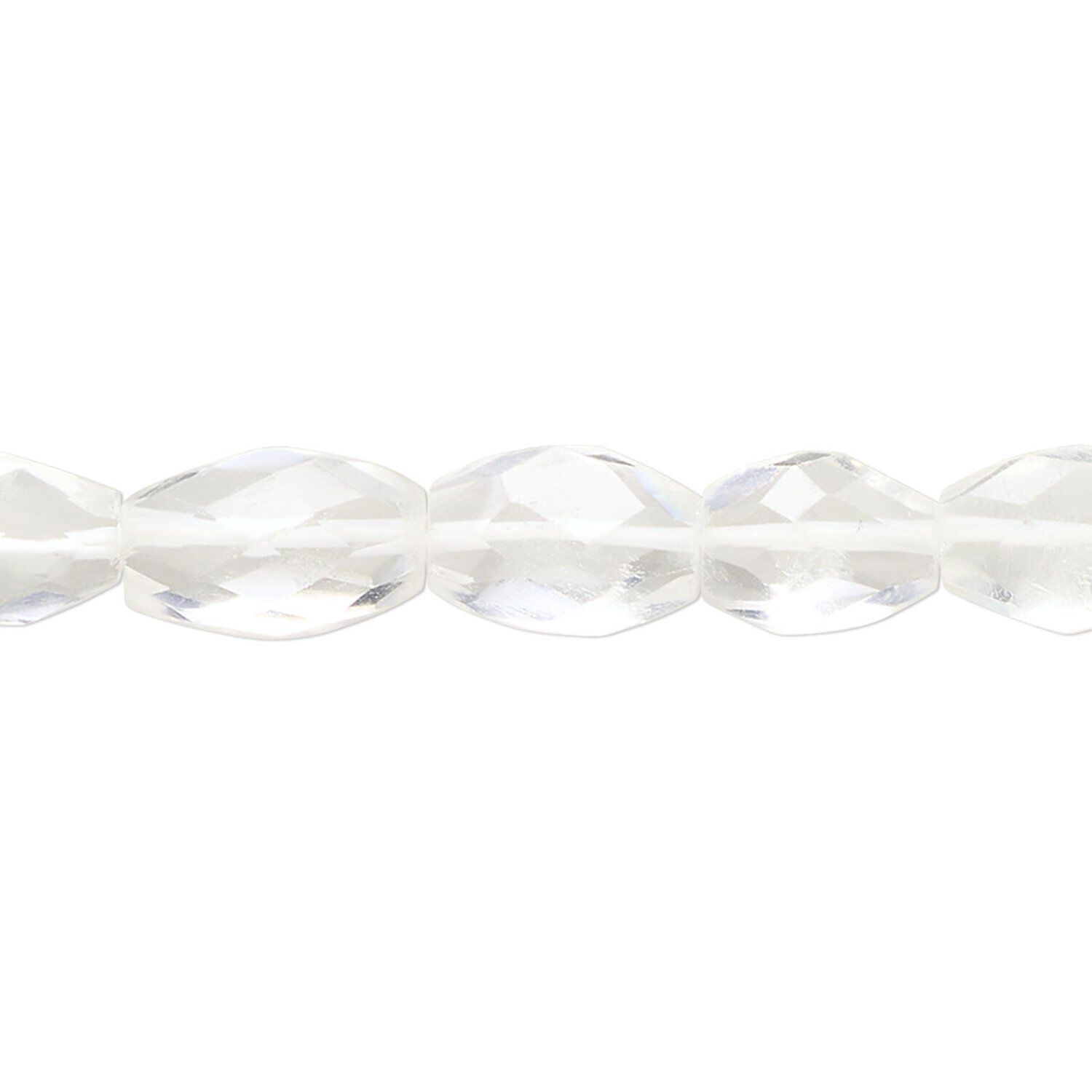 Quartz crystal 1pkg1, hand-cut faceted oval bead natural 14 inch 8x7mm-13x8mm