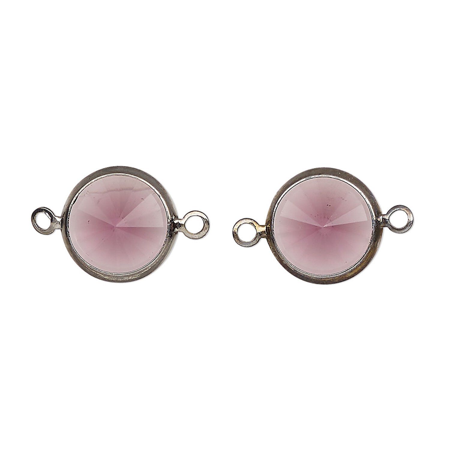 Link, Vintage Crystal™, crystal and gunmetal-plated brass, amethyst, 12mm rivoli. Sold per pkg of 2.
