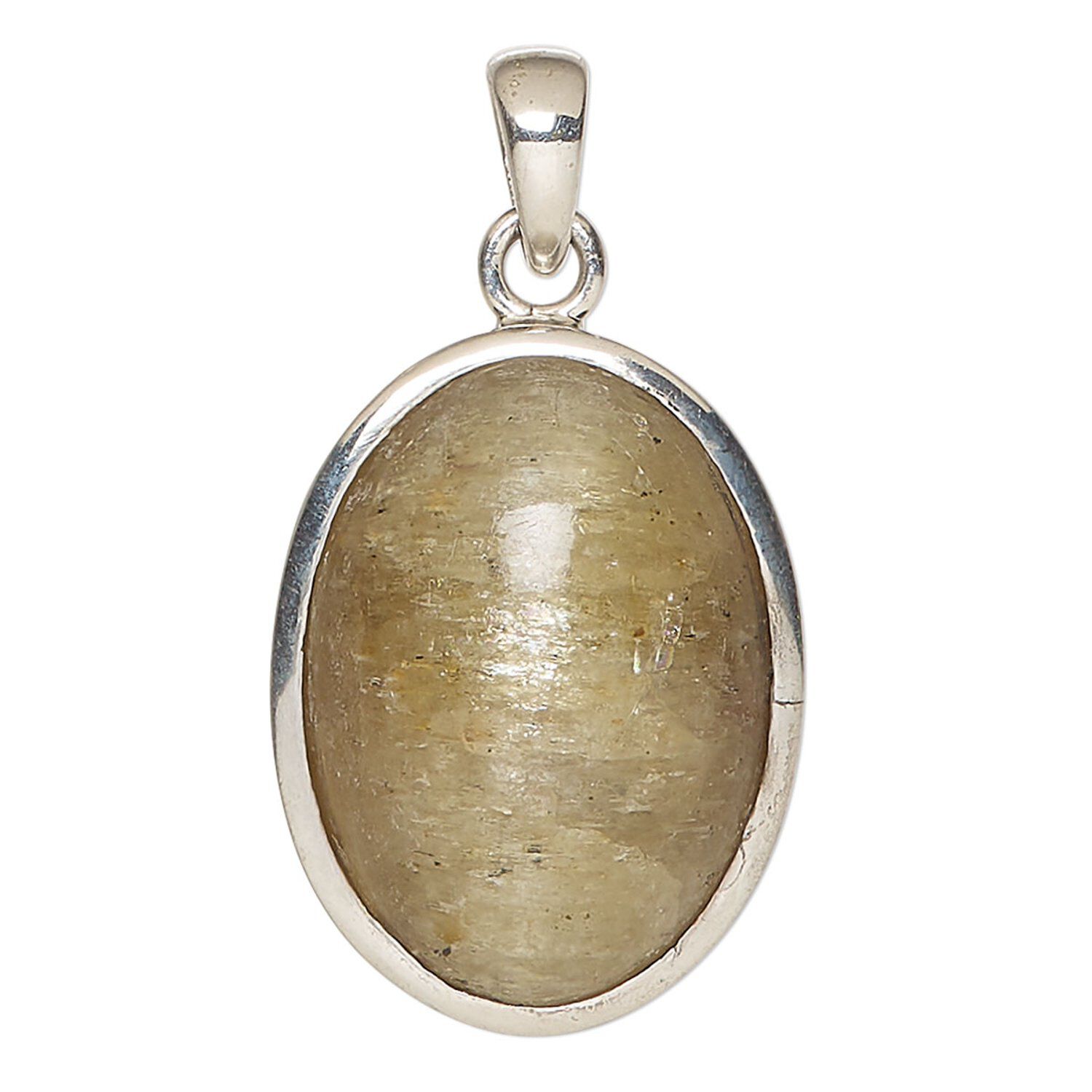 Pendant, lemon calcite (coated) and sterling silver, 29x22mm oval. Sold individually.
