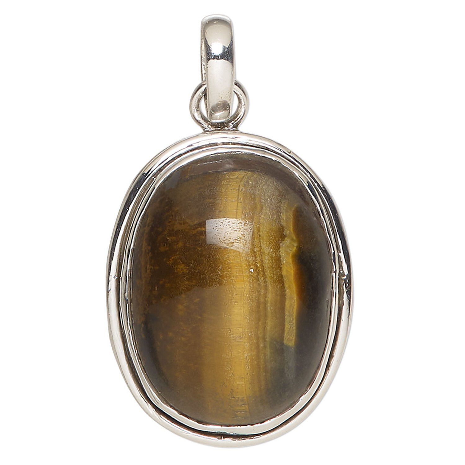 Pendant, tigereye (natural) and sterling silver, 30x24mm oval. Sold individually.