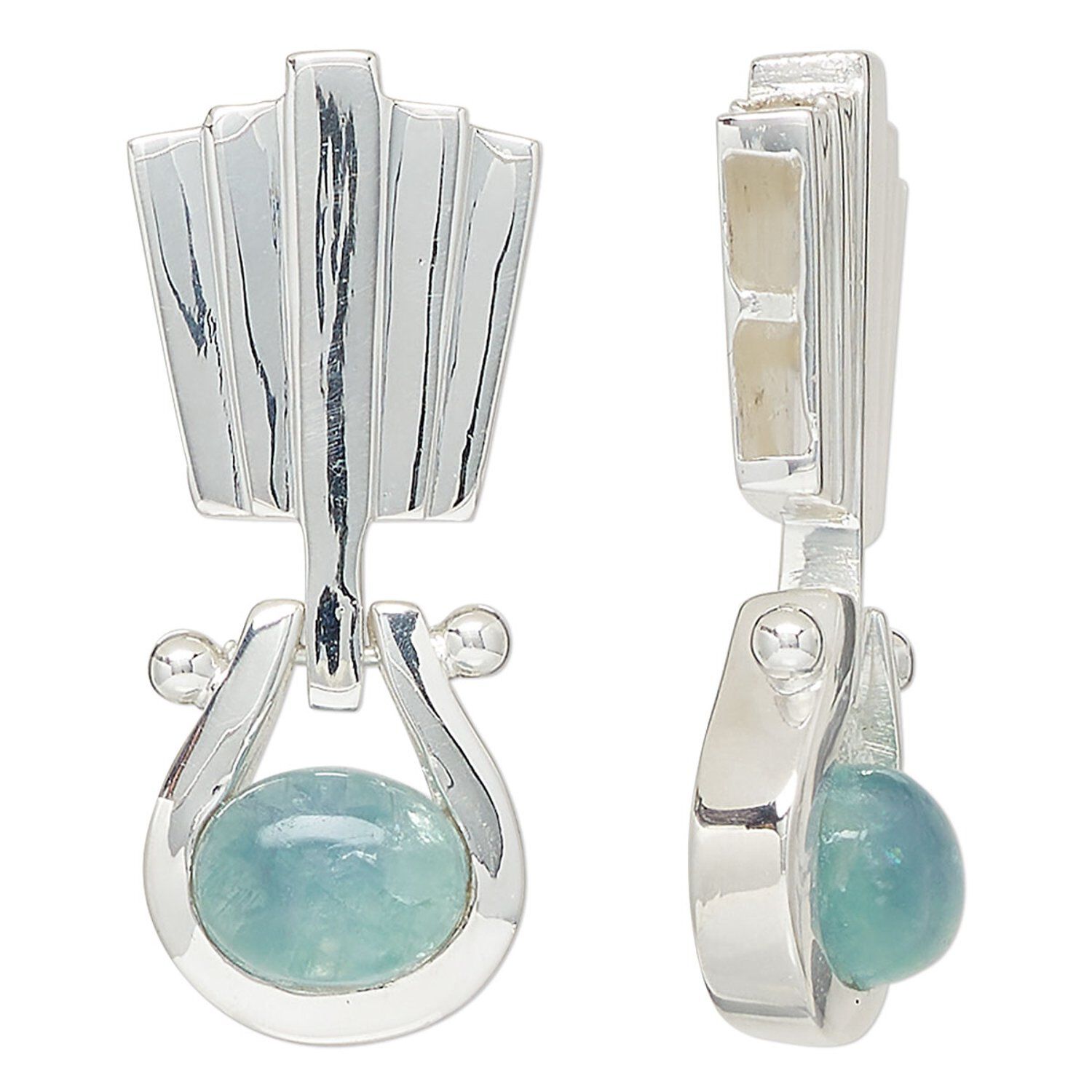 Pendant, apatite (natural) and sterling silver, 40x17mm. Sold individually.