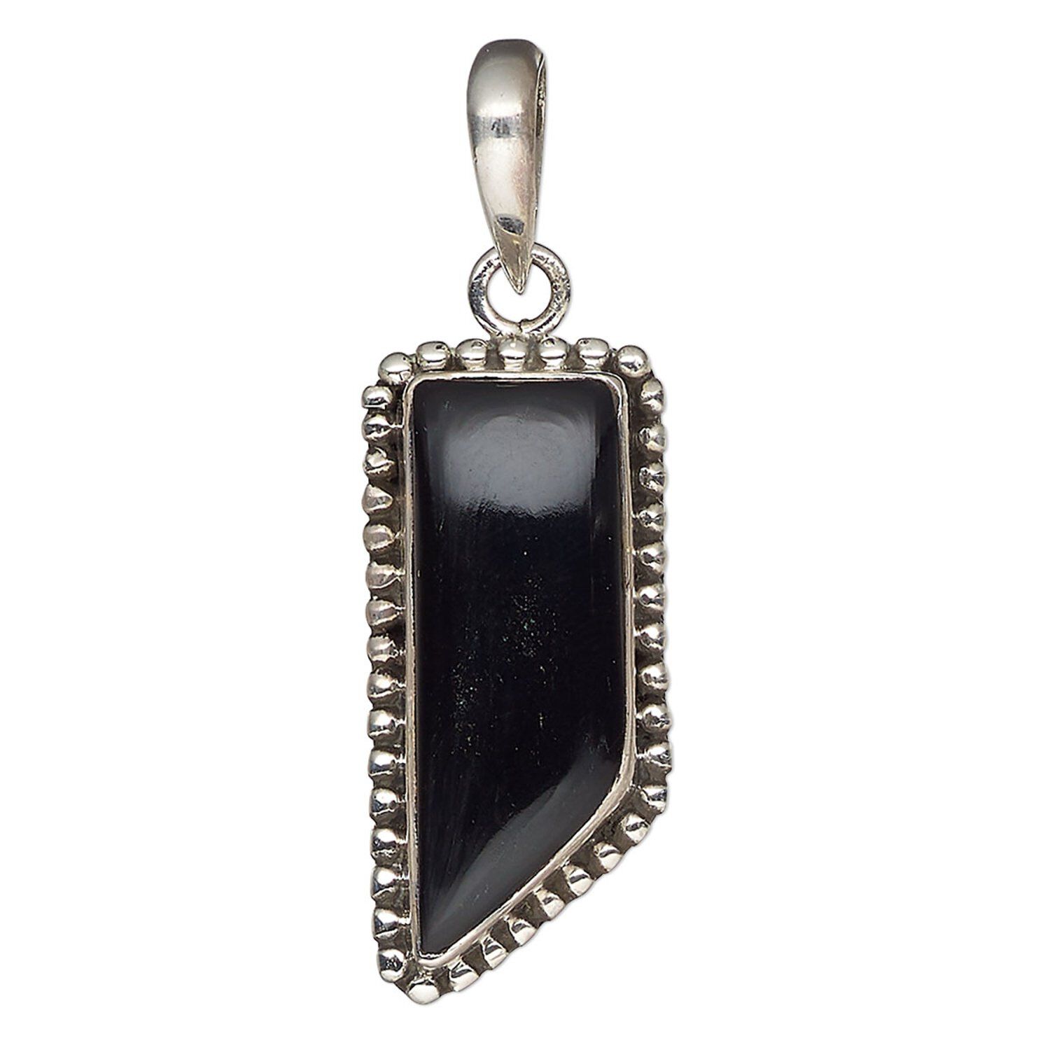 The crisp, geometric shape of this blackstone pendant resembles a stylized tooth for a sleek, modern look. Sterling silver balls add a subtle decorative element to the edge.