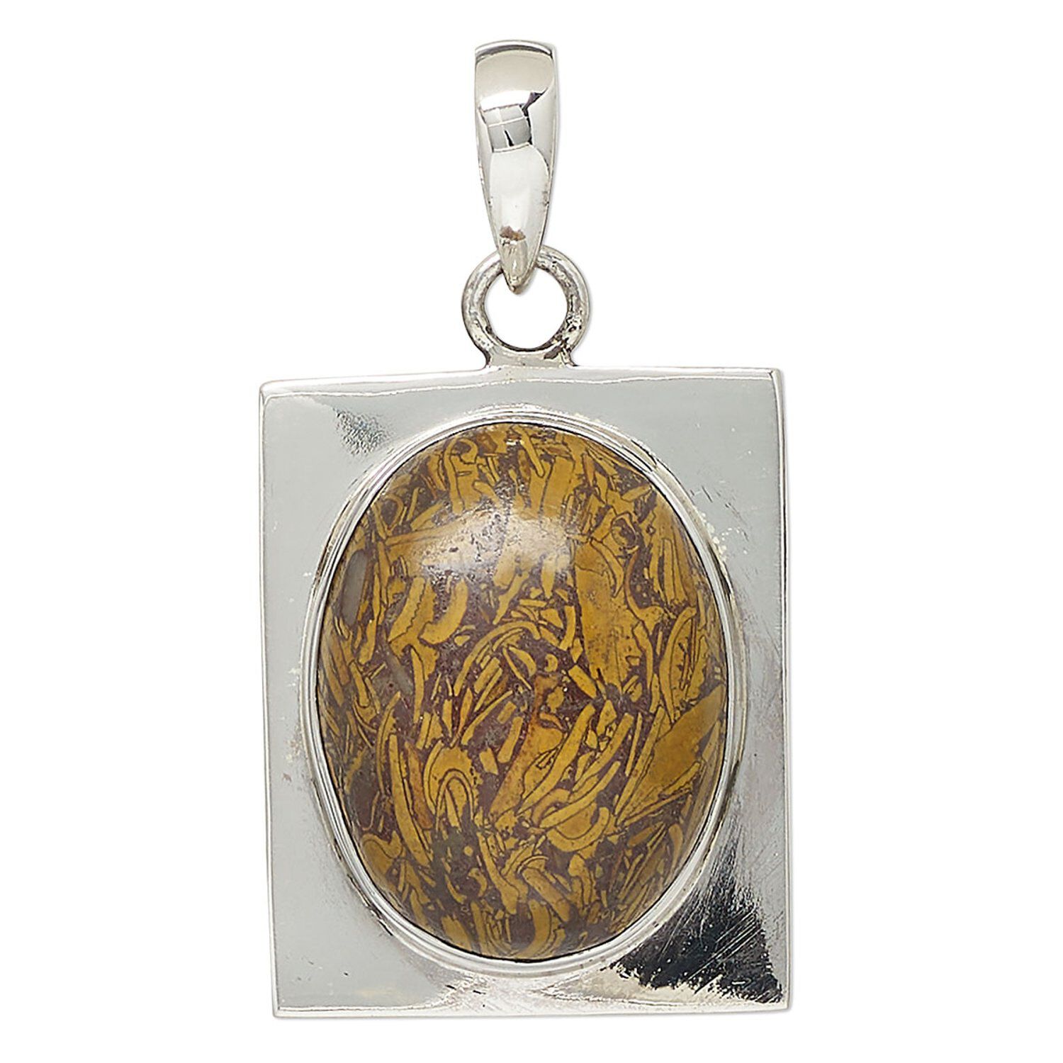 Pendant, chrysanthemum stone (natural) and sterling silver, 29x26mm-34x27mm rectangle. Sold individually.
