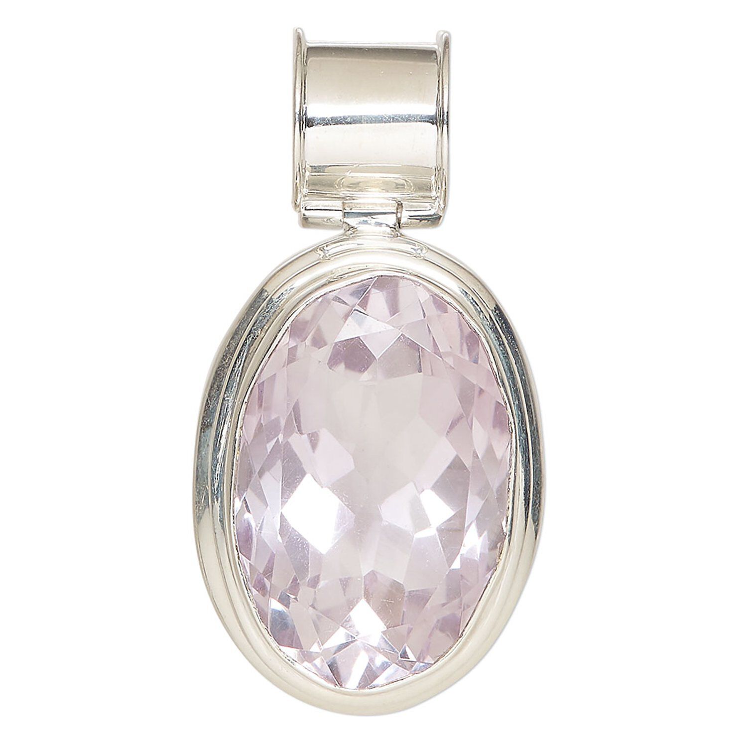 Pendant, lavender amethyst (natural) and sterling silver, 30x26mm-35x29mm oval. Sold individually.