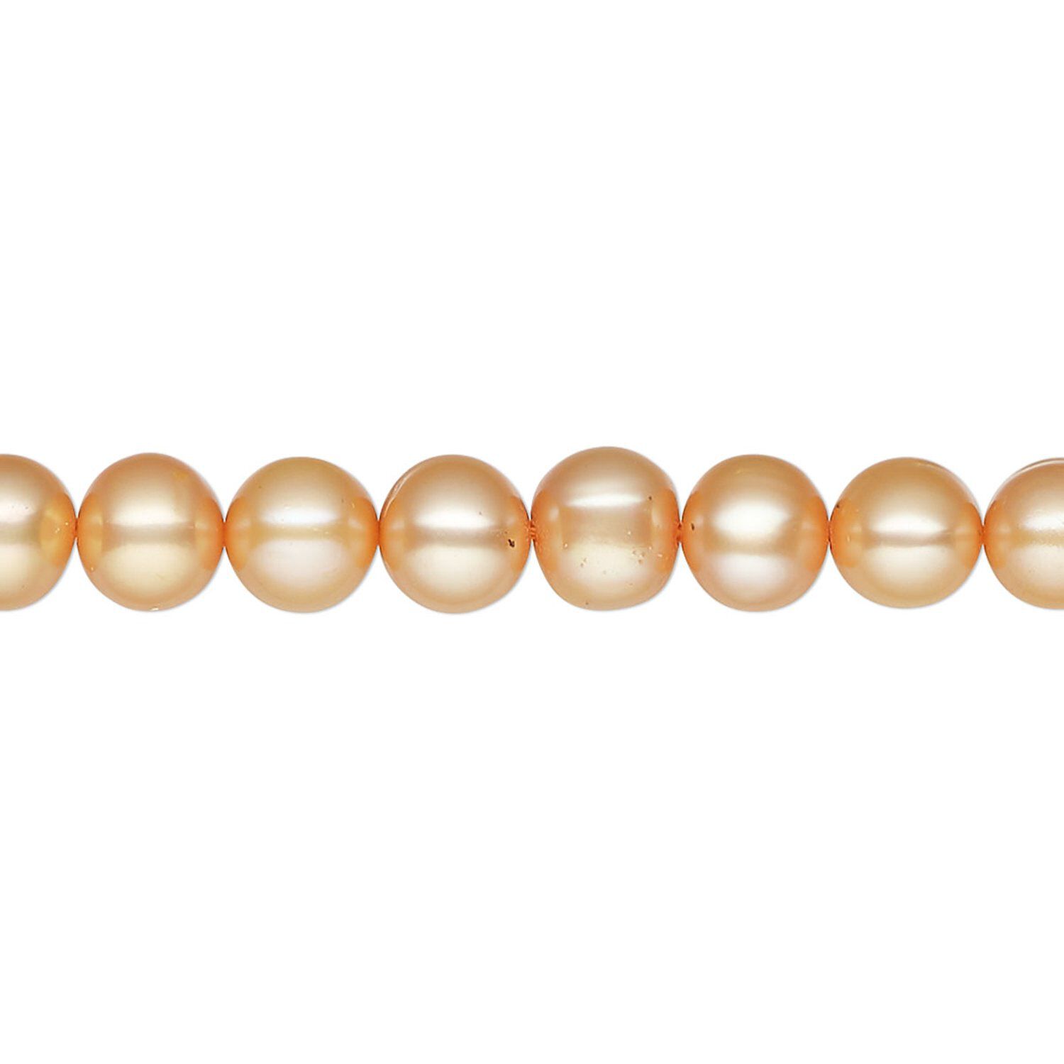 Pearl, cultured freshwater pearl (dyed), carrot, 6-7mm semi-round, C- grade, Mohs hardness 2-1/2 to 4. Sold per 15" strand, approximately 60 beads.