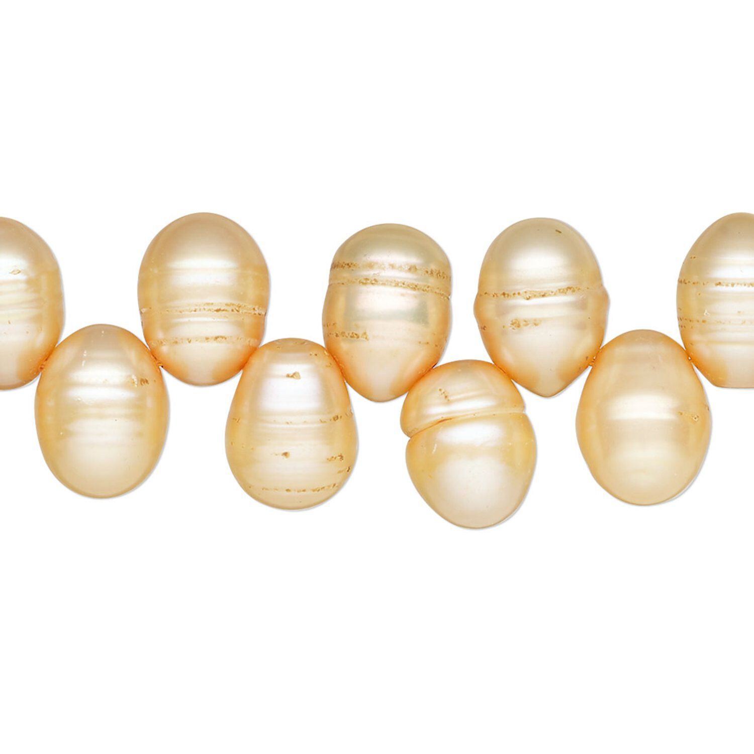Pearl, cultured freshwater pearl (dyed), apricot, 10x7mm-12x8mm top-drilled teardrop , D grade, Mohs hardness 2-1/2 to 4. Sold per 15" strand, approximately 70 beads.