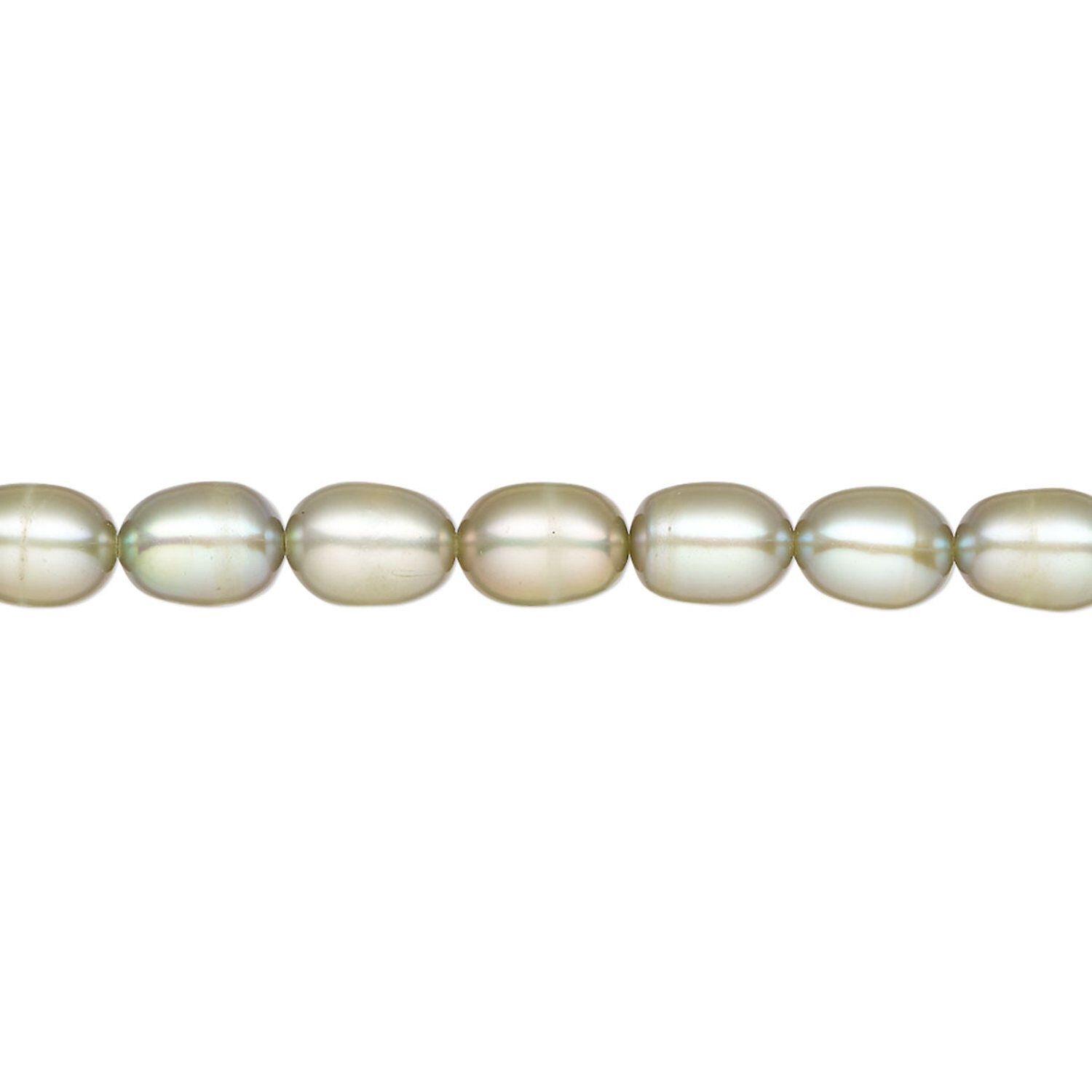 Pearl, cultured freshwater (dyed), light pine, 4-6mm rice, C grade, Mohs hardness 2-1/2 to 4. Sold per 15-inch strand.
