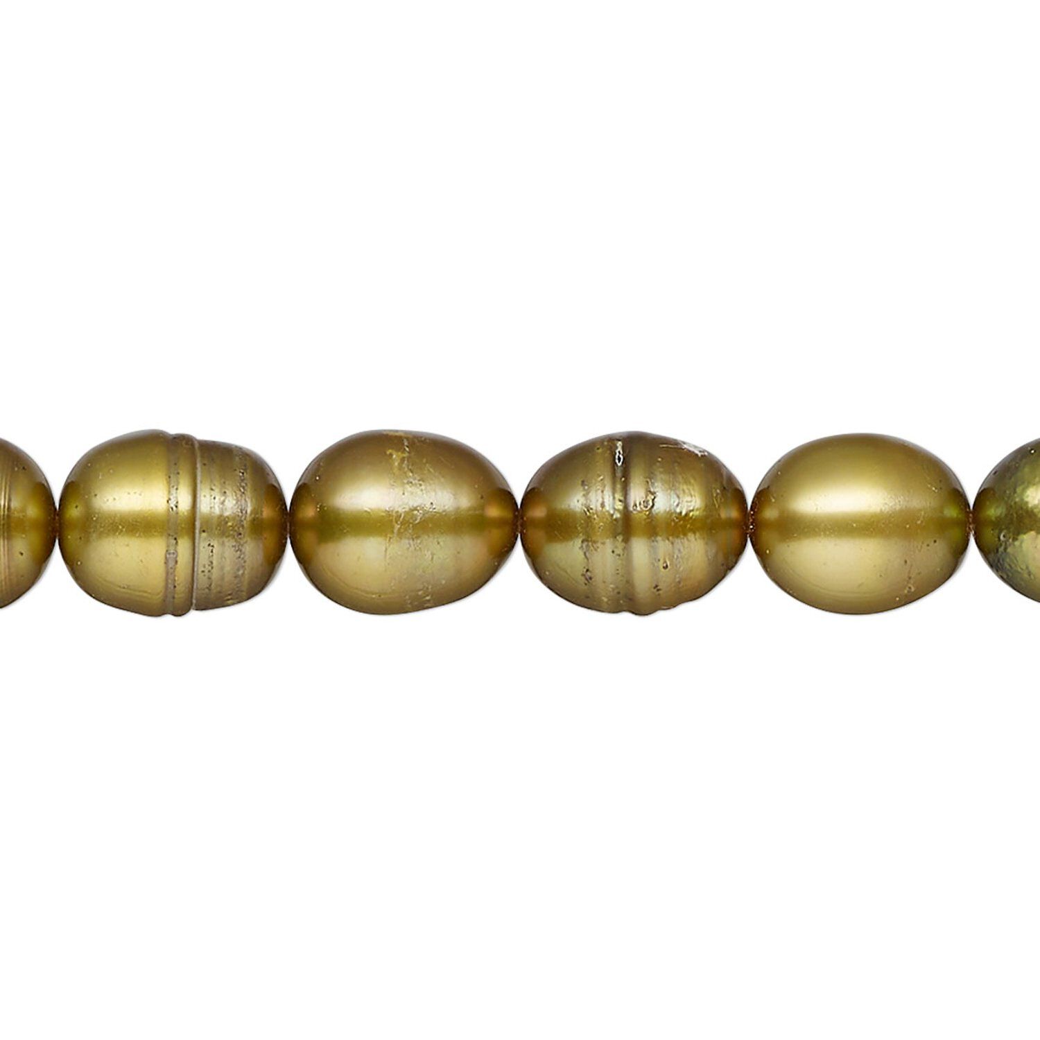 Pearl, cultured freshwater (dyed), moss, 8-9mm rice, D grade, Mohs hardness 2-1/2 to 4. Sold per 15-inch strand.