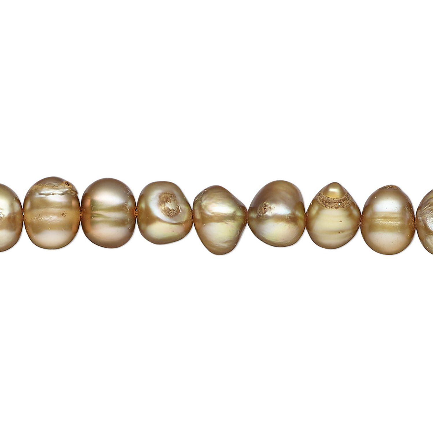 Pearl, cultured freshwater (dyed), golden copper, 6-7mm flat-sided potato, D grade, Mohs hardness 2-1/2 to 4. Sold per 15-inch strand.