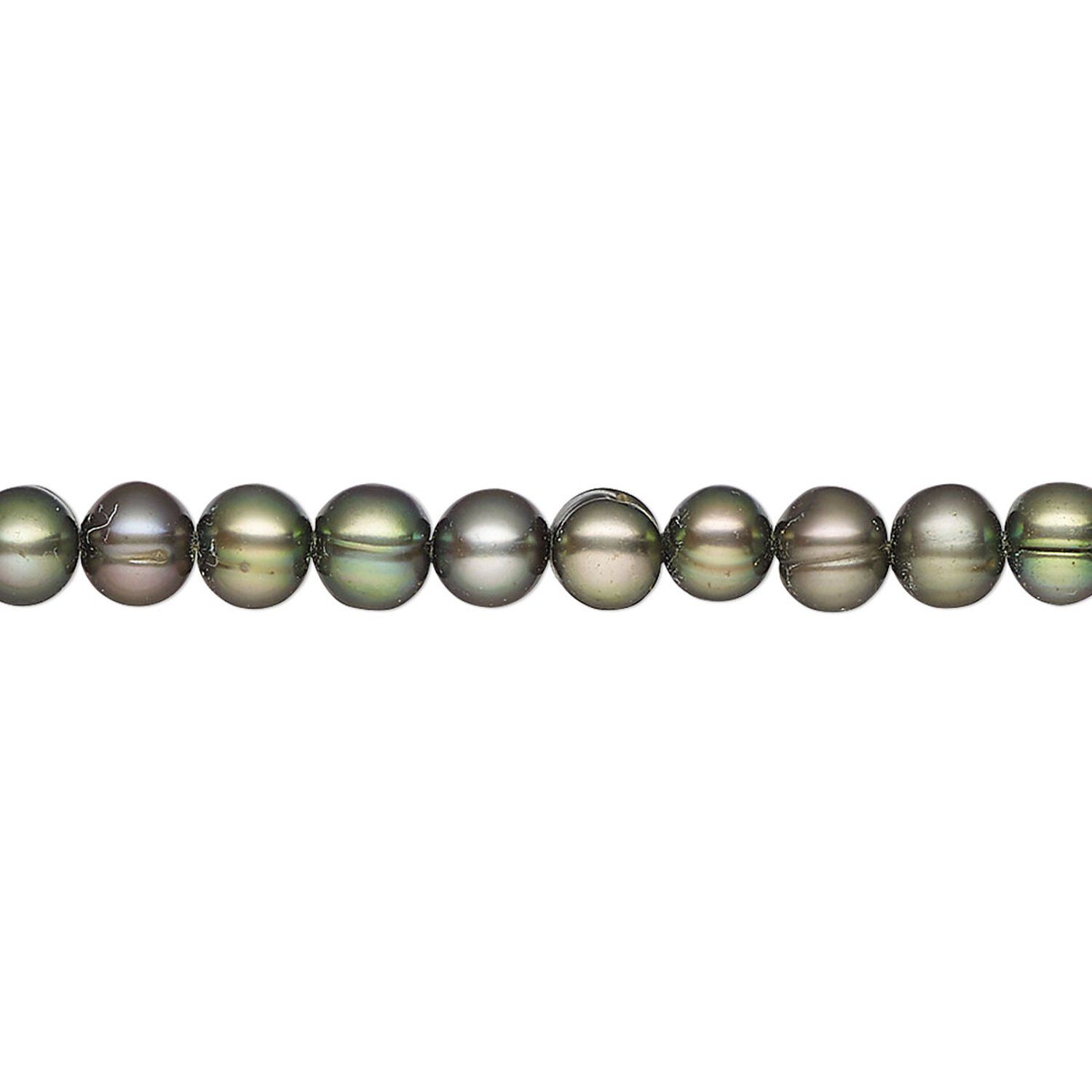 Pearl, cultured freshwater pearl (dyed), green, 4-6mm semi-round, C- grade, Mohs hardness 2-1/2 to 4. Sold per 15" strand, approximately 85 beads.