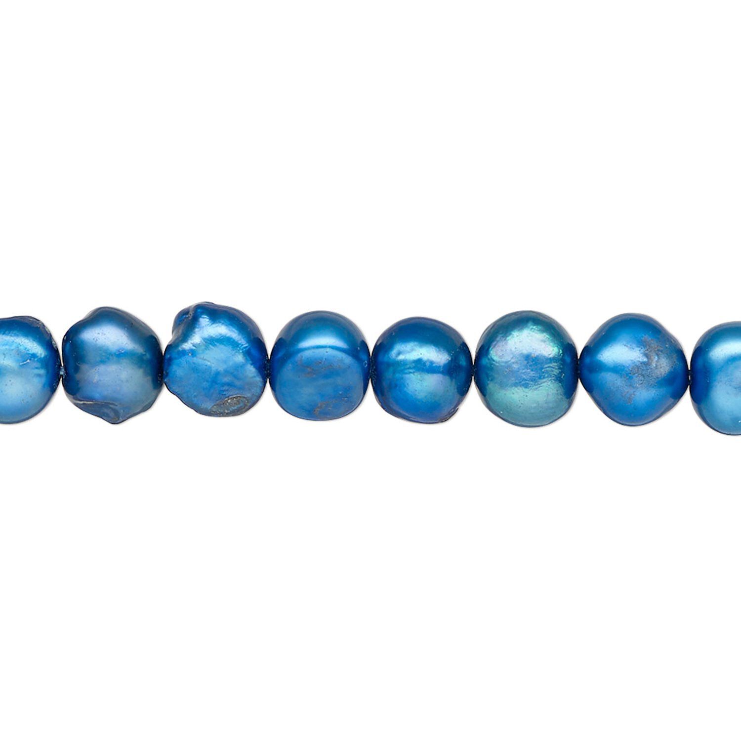 Pearl, cultured freshwater (dyed), blue, 7-8mm flat-sided potato, D grade, Mohs hardness 2-1/2 to 4. Sold per 15-inch strand.