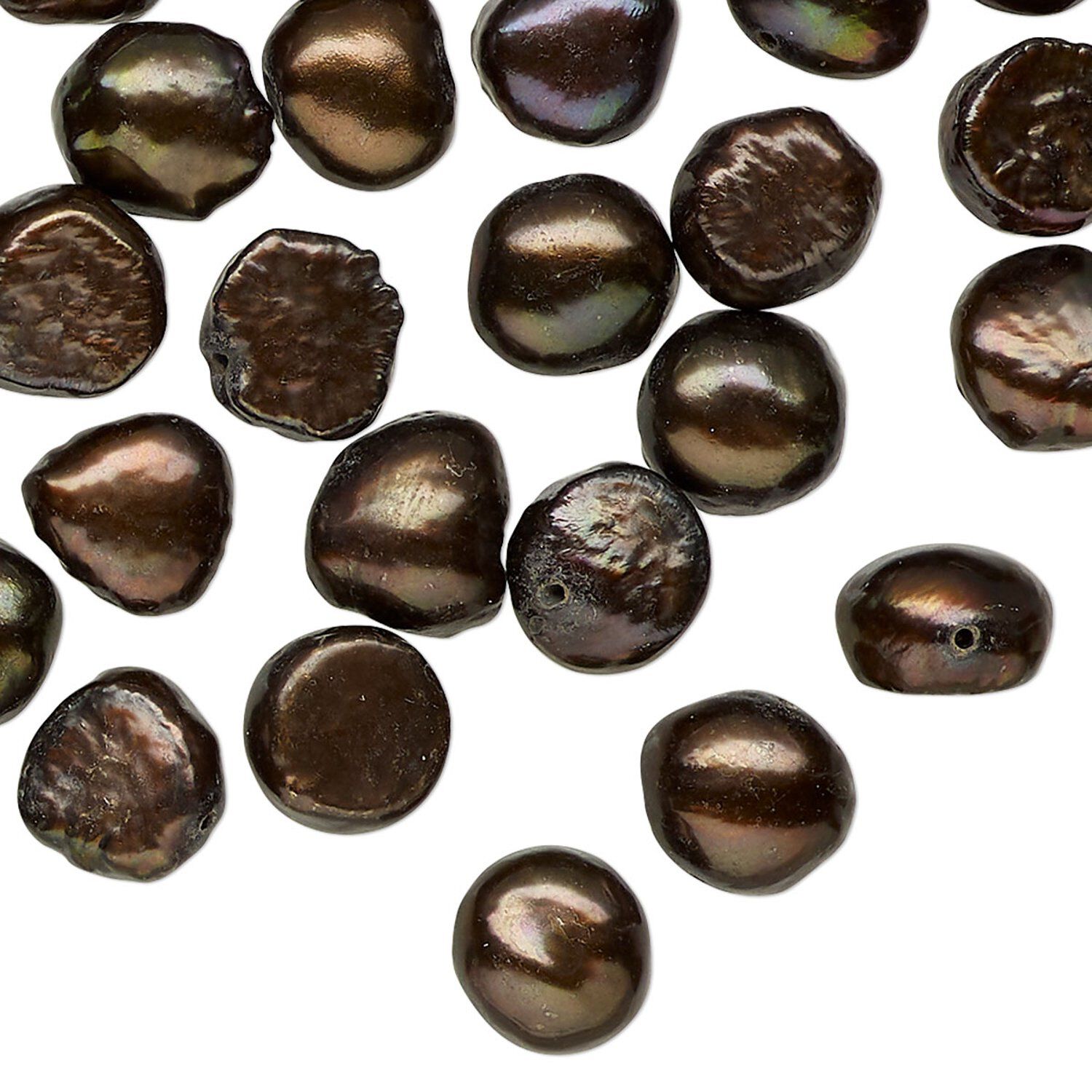 Pearl, cultured freshwater (dyed), dark bronze, 8-10mm flat-sided potato, D grade, Mohs hardness 2-1/2 to 4. Sold per 15-inch strand.