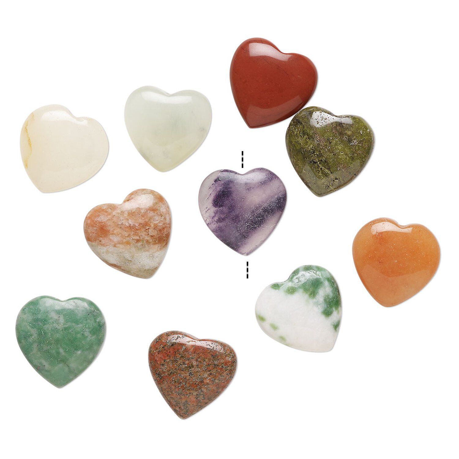 Multi-gemstone 1pkg10, half-drilled puffed heart drop 14-16mm
