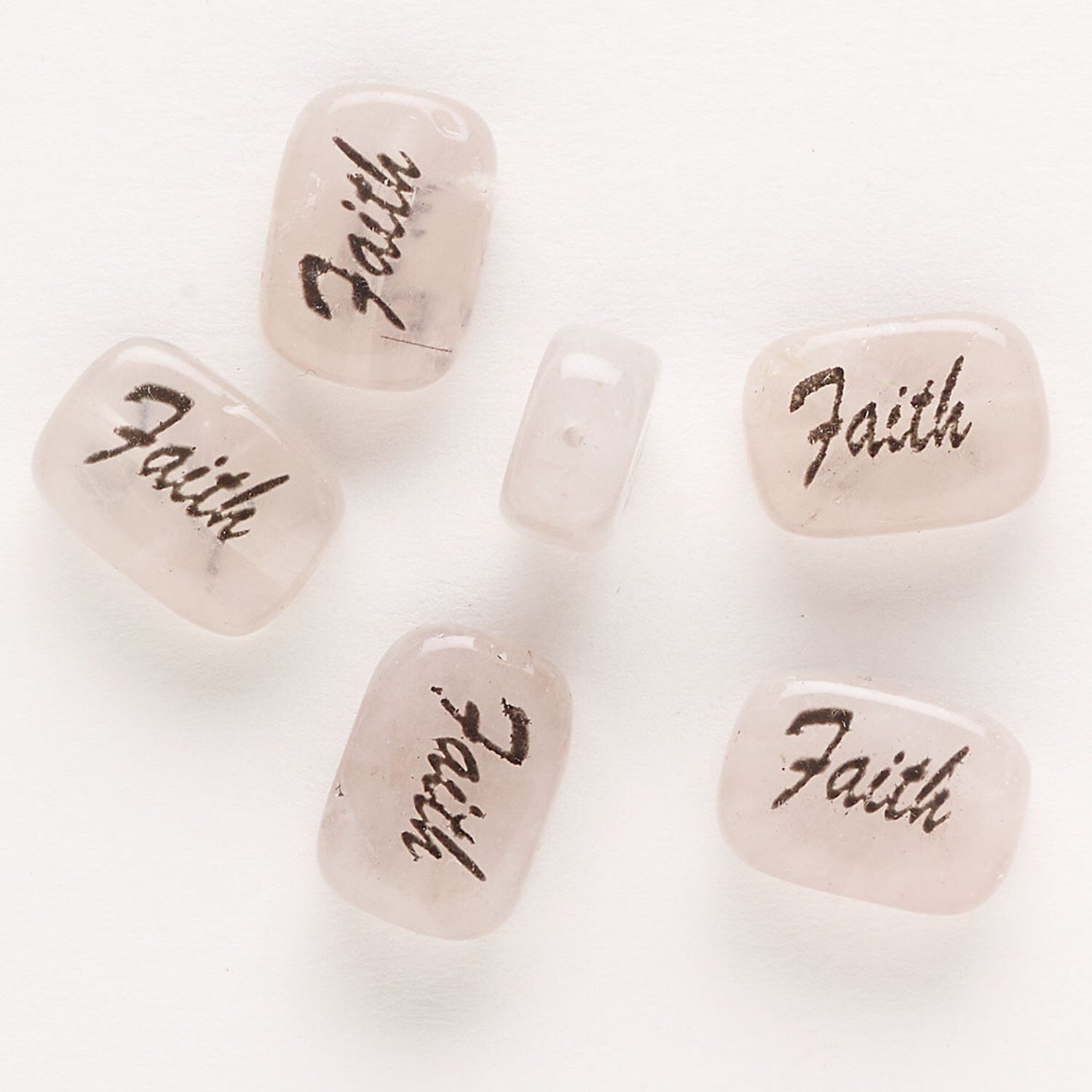 Rose quartz / enamel 1pkg6, double-sided "Faith" flat rectangle bead 14x10mm