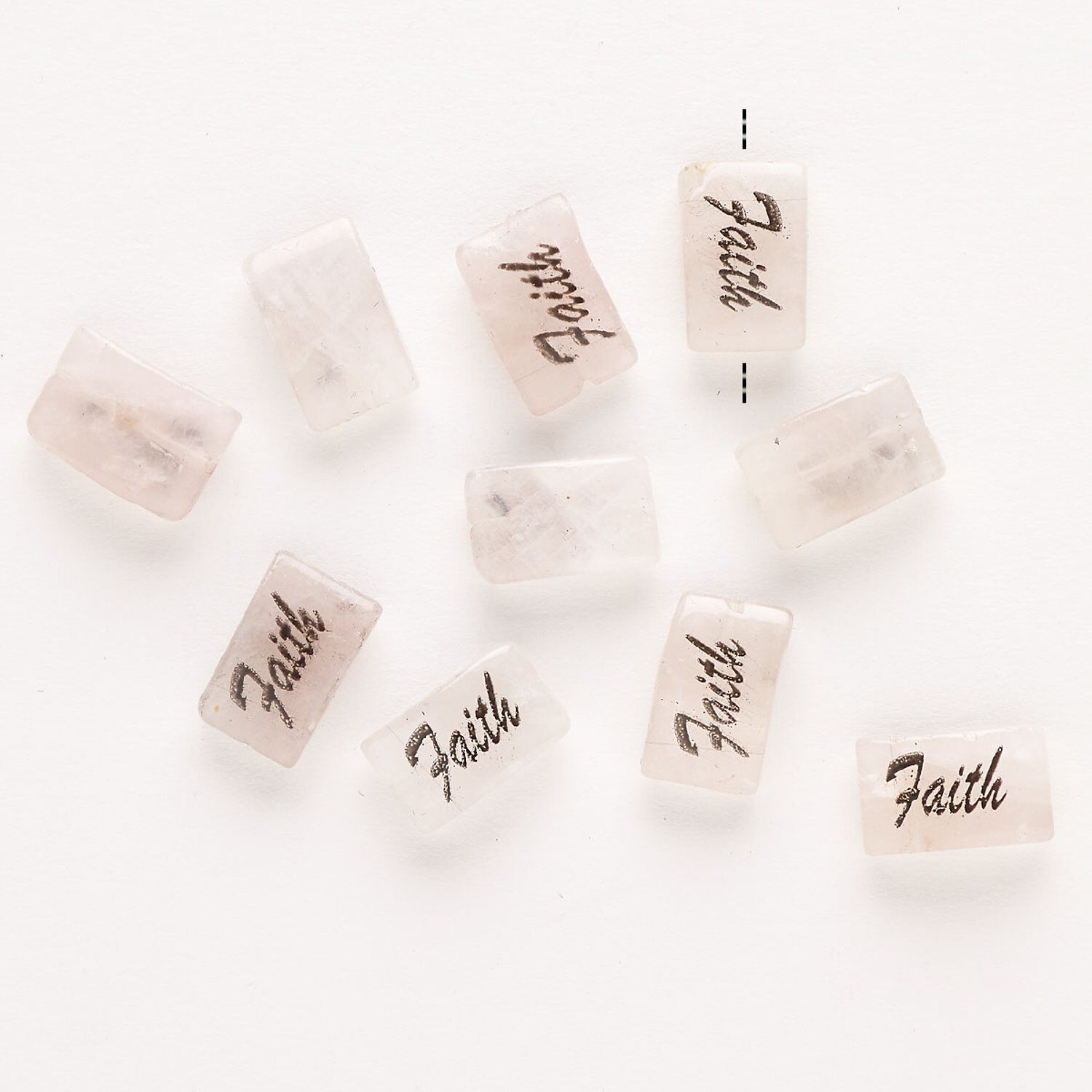 Rose quartz / enamel 1pkg10, "Faith" flat rectangle bead 13x8mm