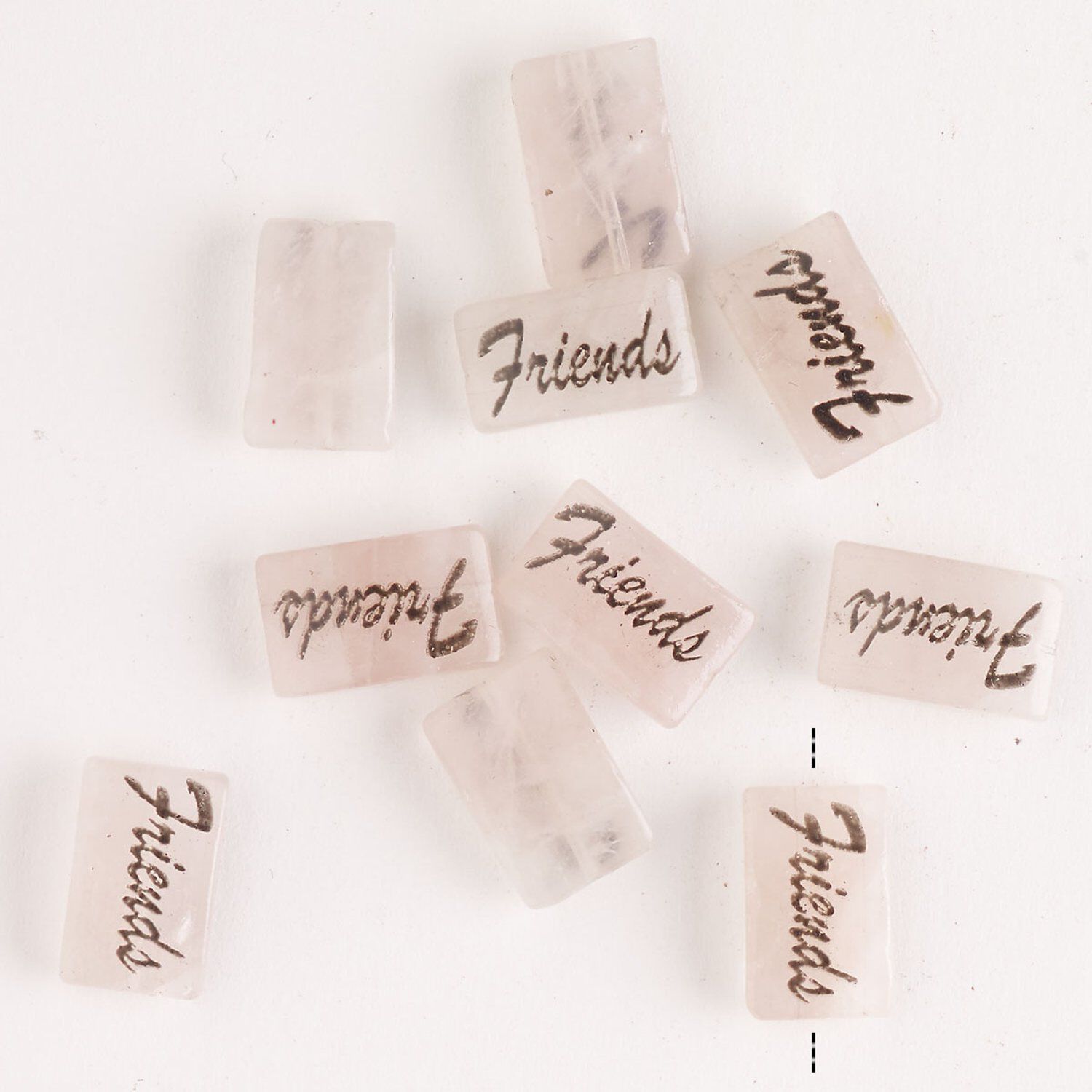 Rose quartz / enamel 1pkg10, "Friends" flat rectangle bead 13x8mm