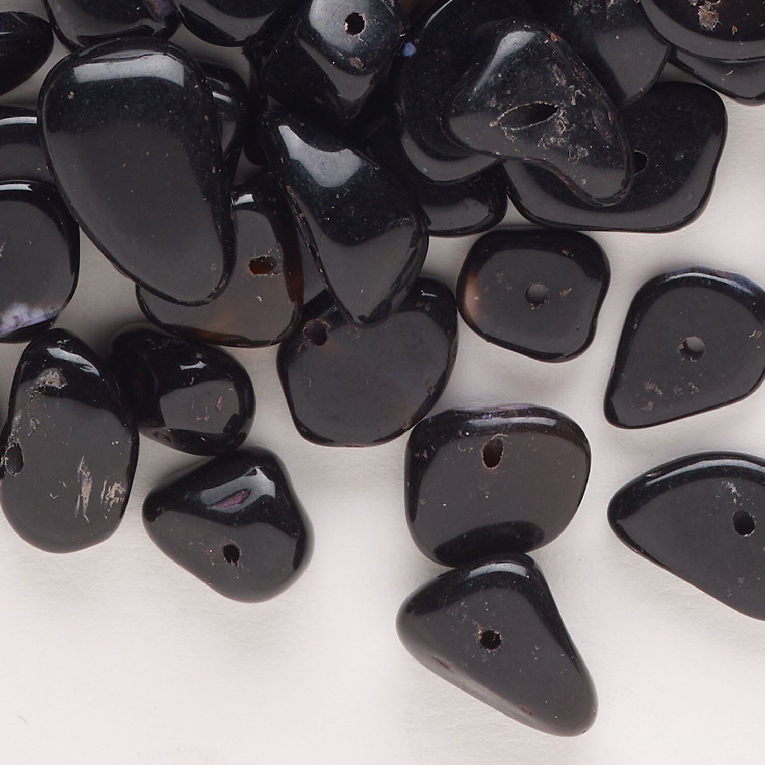 Bead, glass, pkg/200, opaque black/grey/pink, small to extra-large top-drilled chip.