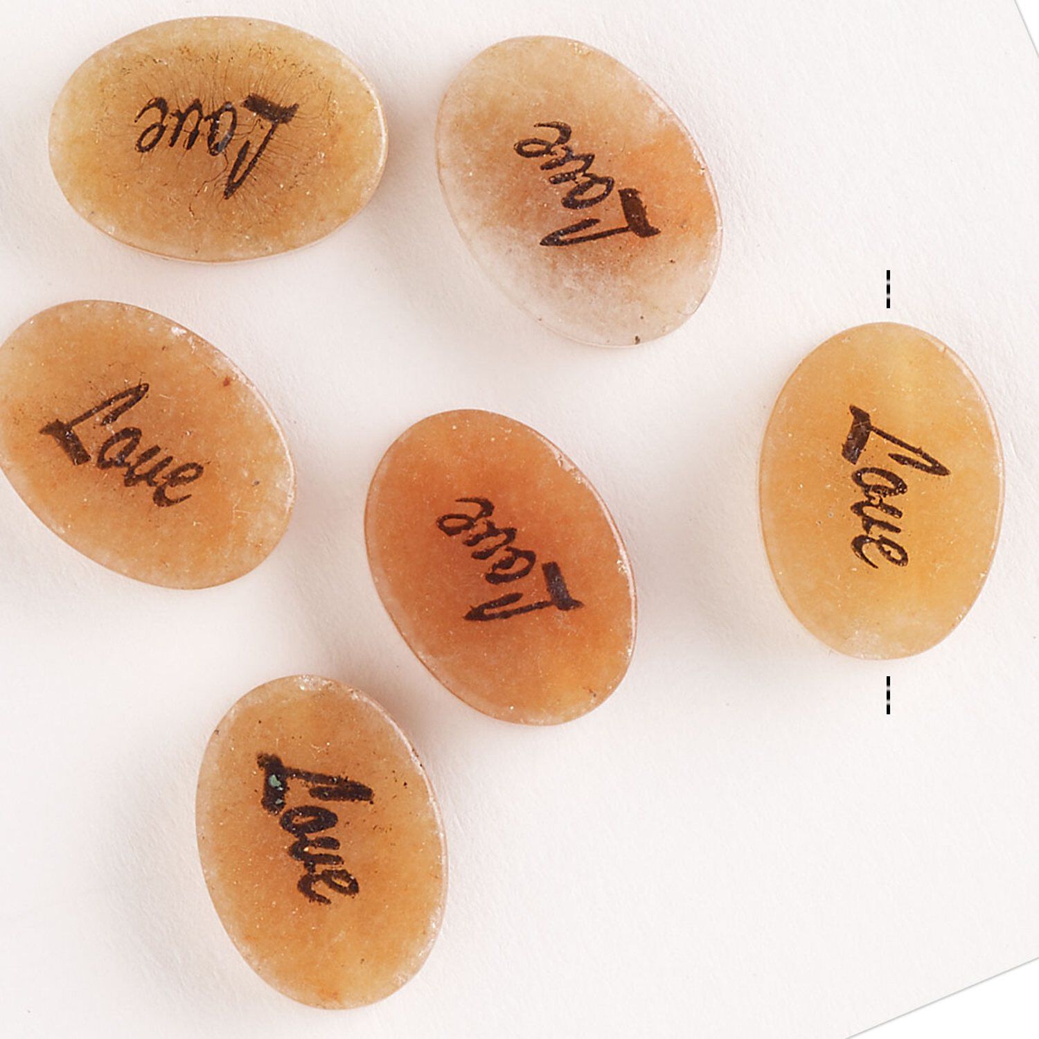 Red aventurine / enamel 1pkg6, double-sided "Love" flat oval bead 14x10mm-14x11mm